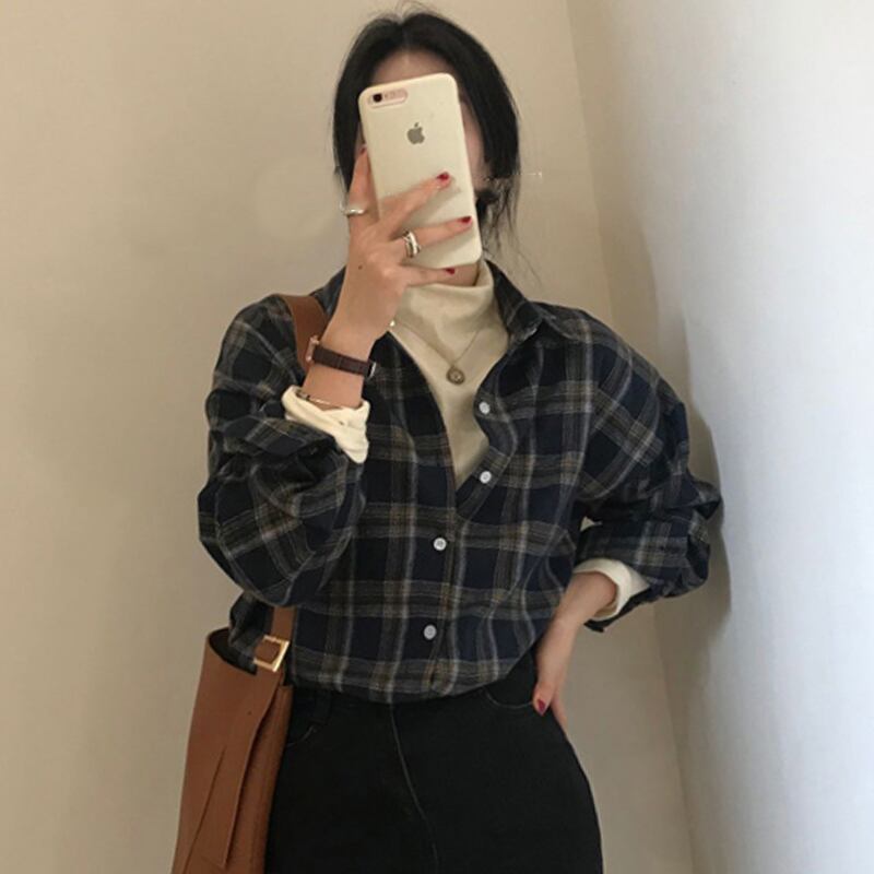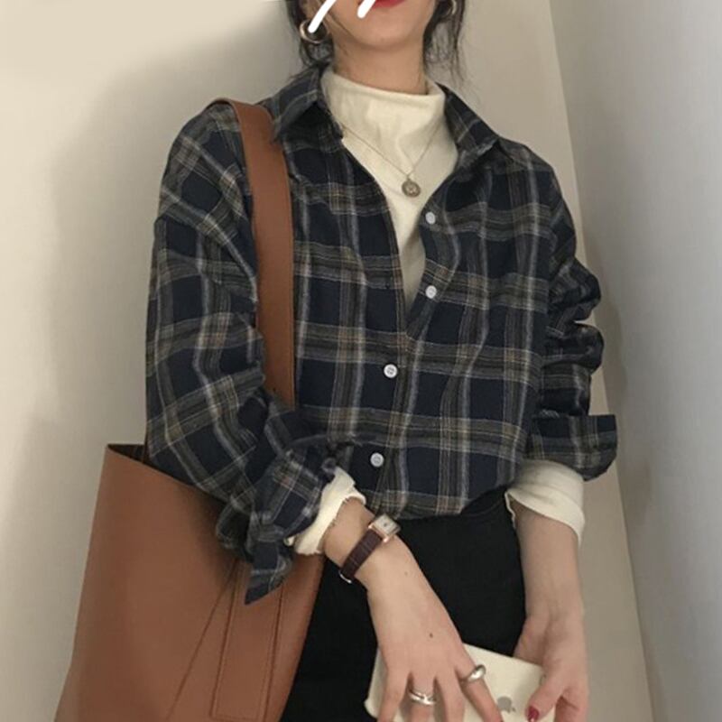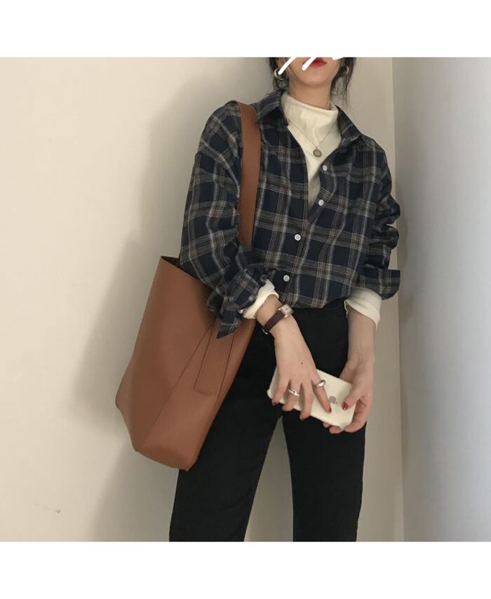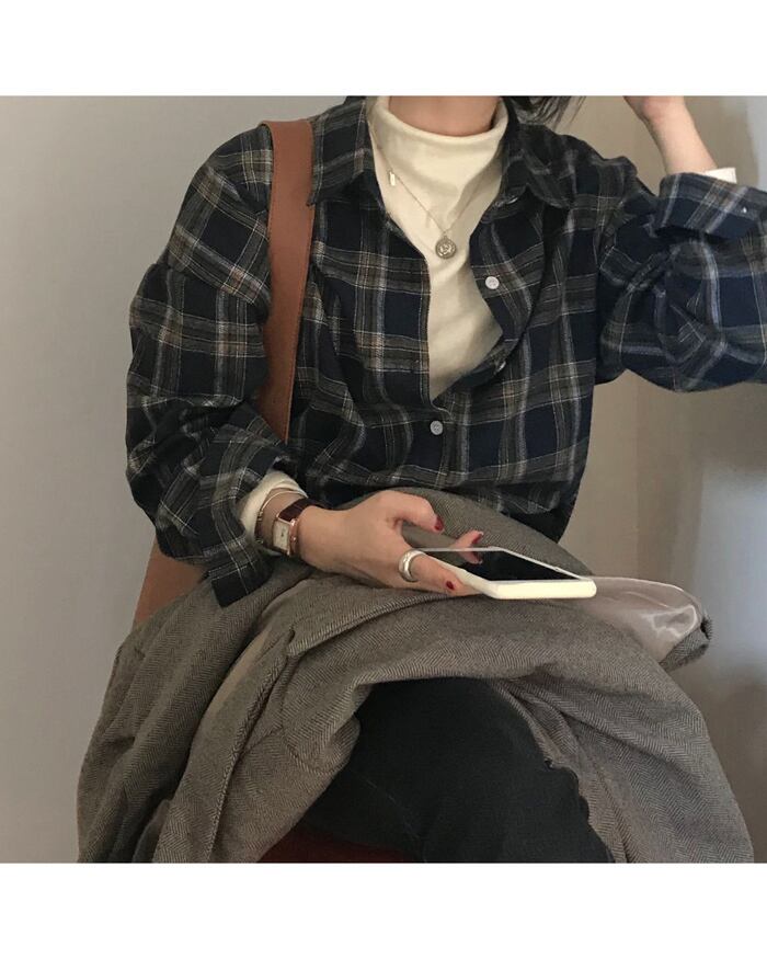 【韓国ファッション】大人可愛い オータムスタンダード格子柄ルーズカジュアルシャツ トップス レディース ロング レトロ 秋物 ♡ 韓国91389954682 | パリジェンヌ、韓国系ファッション July