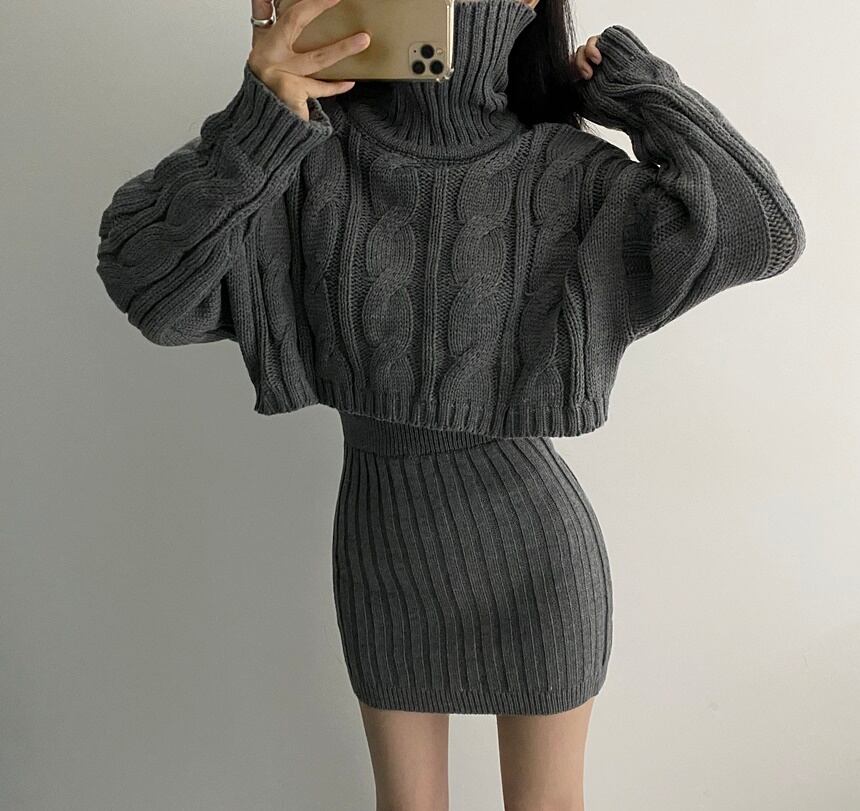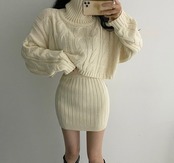 【韓国ファッション】大人可愛い オータムウィンターパターンショートニットセーター ハイウェストウェストスカート 秋物 冬物 ♡ 韓国18398759889 | パリジェンヌ、韓国系ファッション July