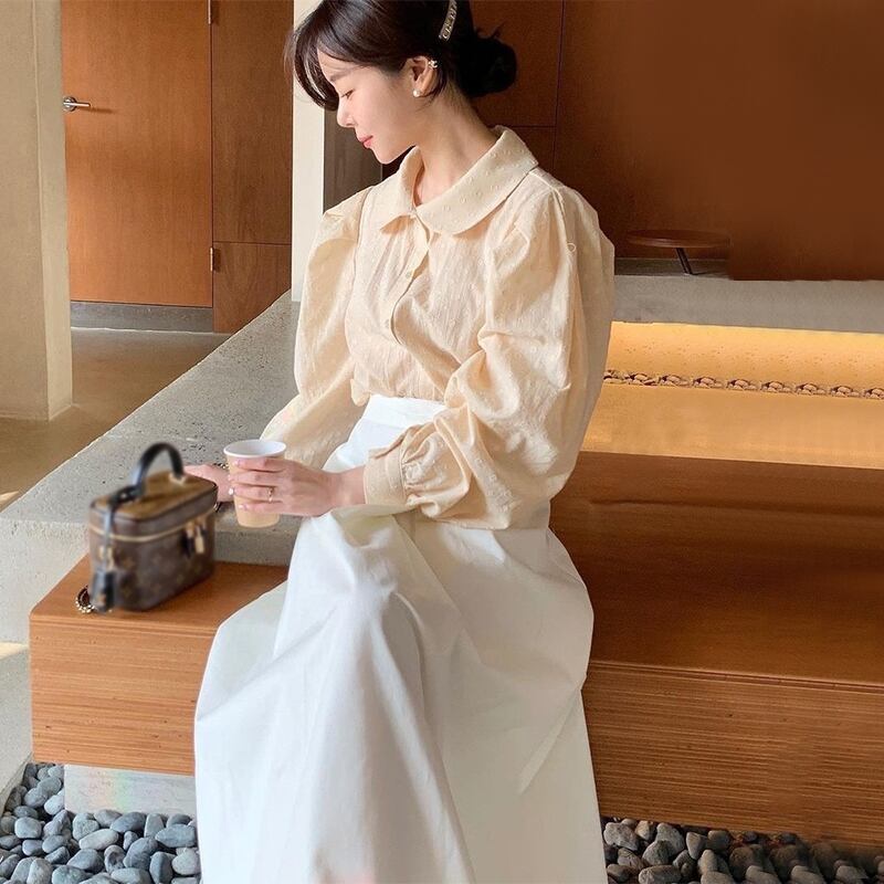 【韓国ファッション】大人可愛い オータムウィンターカラースリーブTシャツ シャツ ハイウェストウェストスカート 秋物 冬物 ♡ 韓国76591799917 | パリジェンヌ、韓国系ファッション July