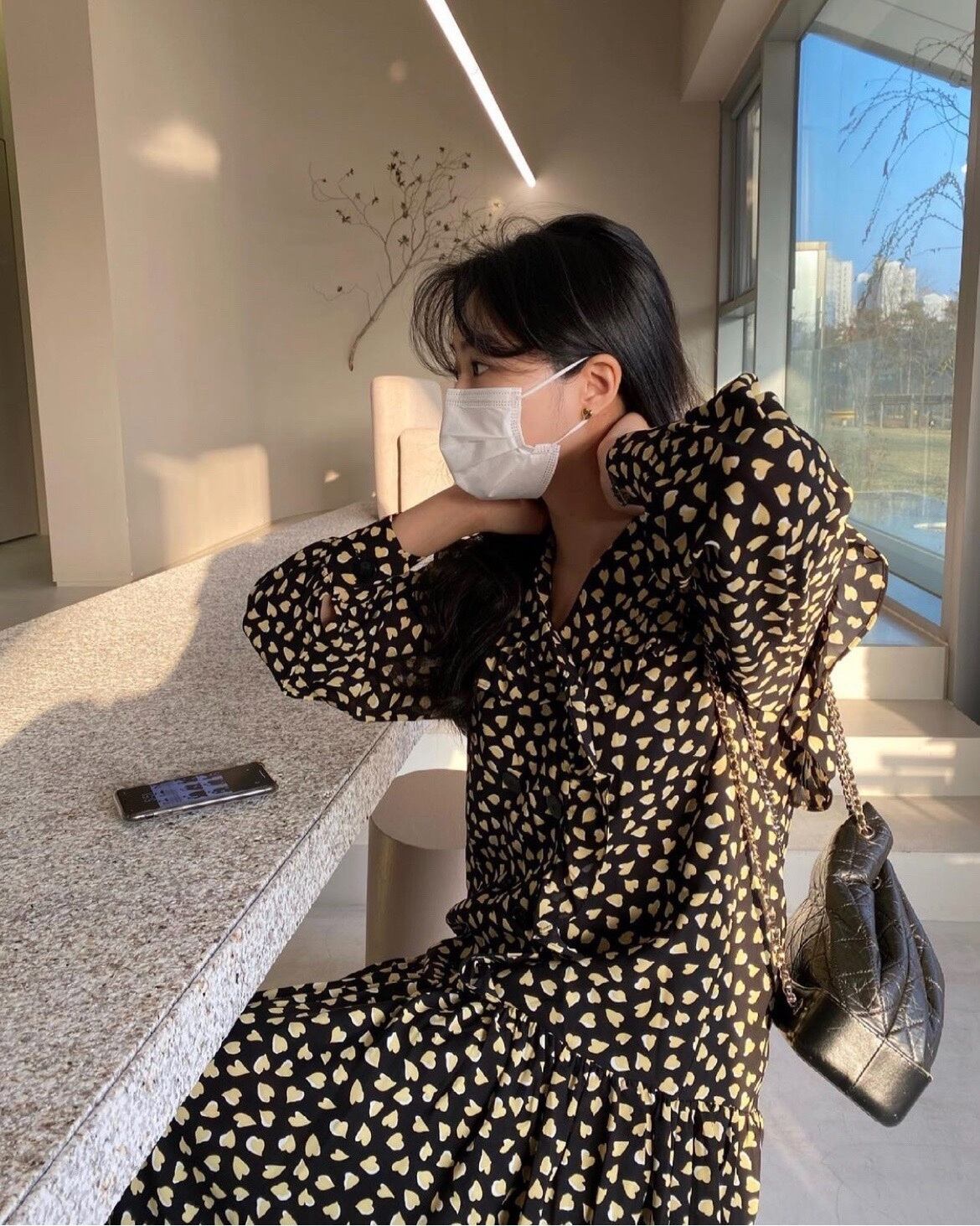 【韓国ファッション】大人可愛い オータムスタンダードダブルブレストルーズロングフローラルドレス レディース レトロ 秋物 花柄 ♡ 韓国80148101866 | パリジェンヌ、韓国系ファッション July