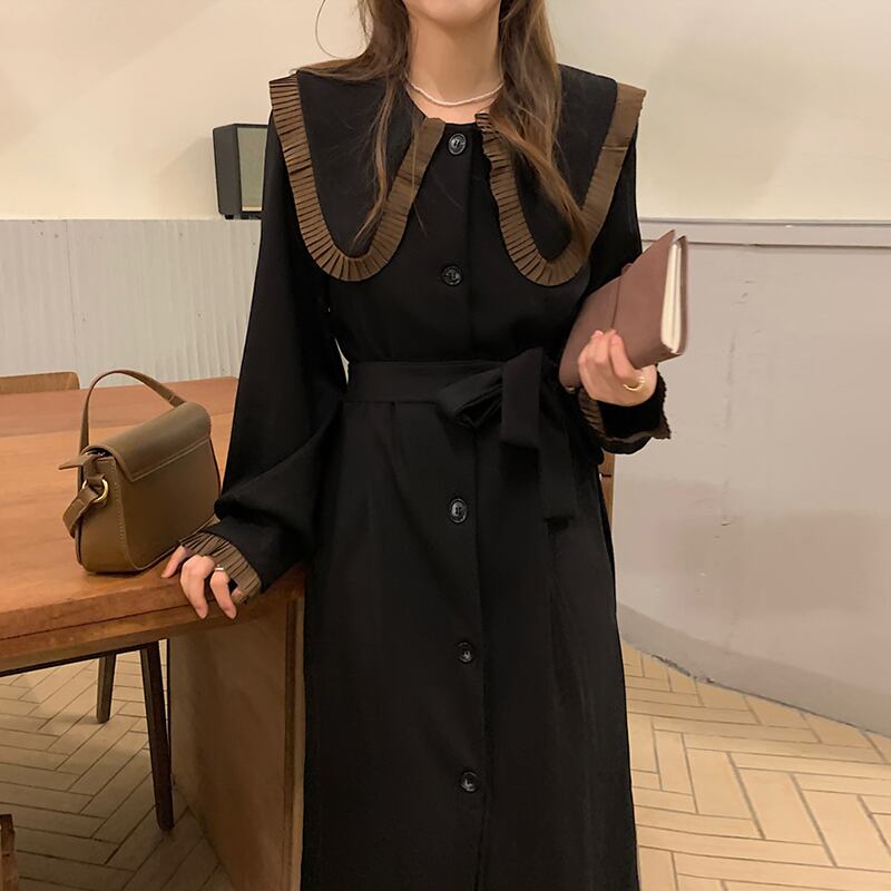 【韓国ファッション】大人可愛い オータムウィンタースタンダードカラーウェストベルト スリーブロングドレス レディース レトロ 秋物 冬物 ハーネス ♡ 韓国53908722028 | パリジェンヌ、韓国系ファッション July