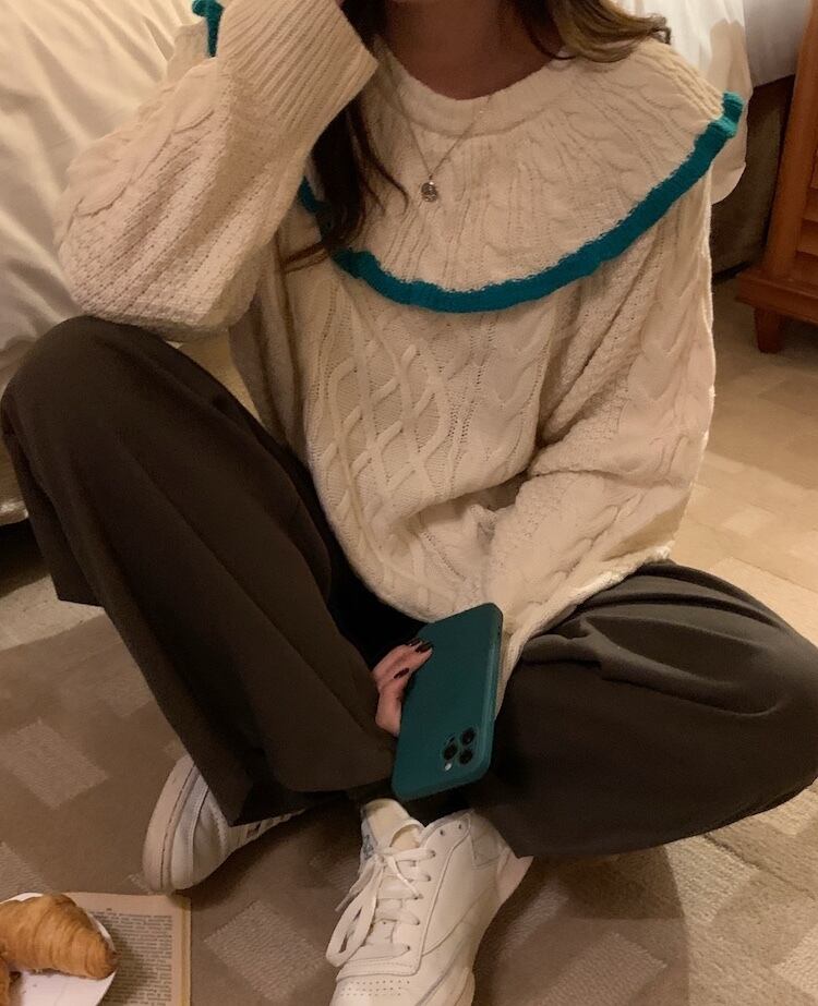 【韓国ファッション】大人可愛い オータムウィンタースタイルカラールーズパターンニットセーター レディース ロング 秋物 冬物 ♡ 韓国15616718343 | パリジェンヌ、韓国系ファッション July