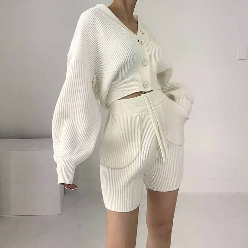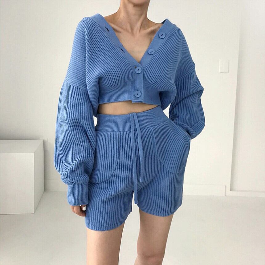 【韓国ファッション】大人可愛い オータムVネックショートニットカーディガンハイウェストウェストカジュアルダブルポケットショーツ 秋物 ブルマー ♡ 韓国42322306 | パリジェンヌ、韓国系ファッション July