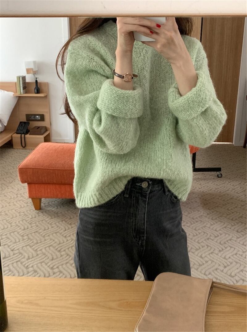 【韓国ファッション】大人可愛い オータムウィンターラウンドネックプルオーバー ルーズカジュアルソリッド カラーニットセーター シャツ レディース ロング 秋物 冬物 Oネック ソリッドカラー ♡ 韓国74586247047 | パリジェンヌ、韓国系ファッション July