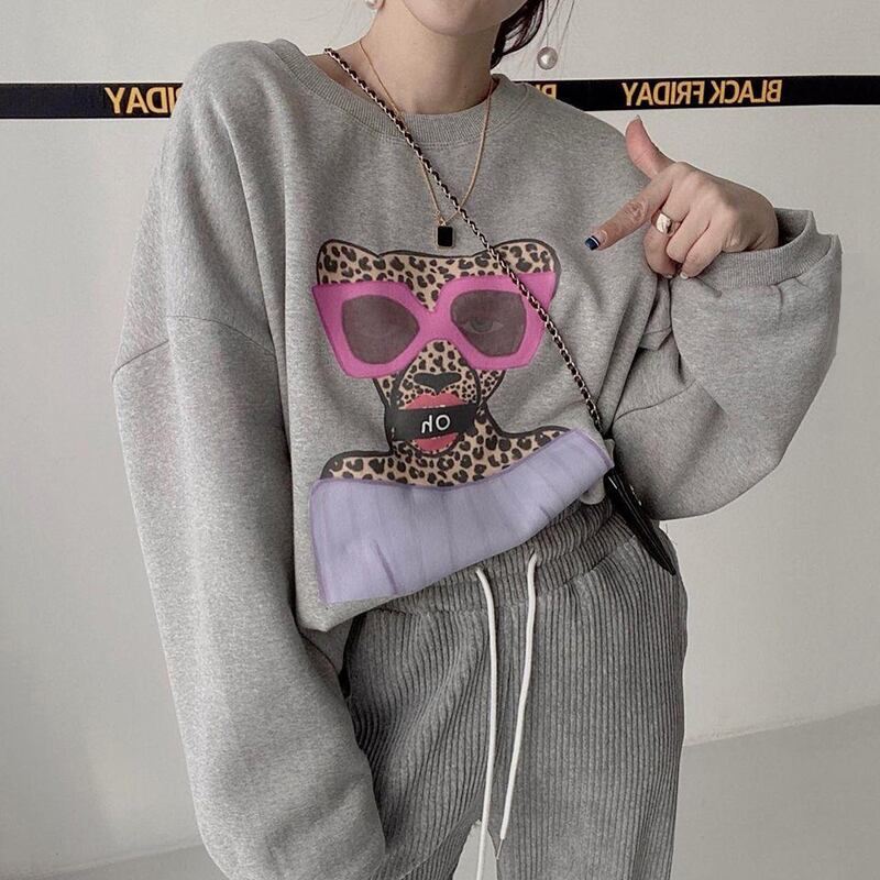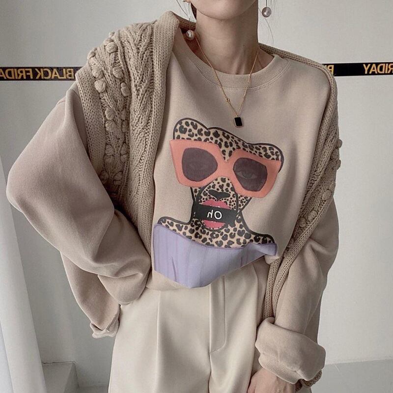 【韓国ファッション】大人可愛い オータムウィンタースタンダードラウンドネックレオパードプリント柄ルーズカジュアル ロング コットン レトロ 秋物 冬物 Oネック ♡ 韓国33349801046 | パリジェンヌ、韓国系ファッション July