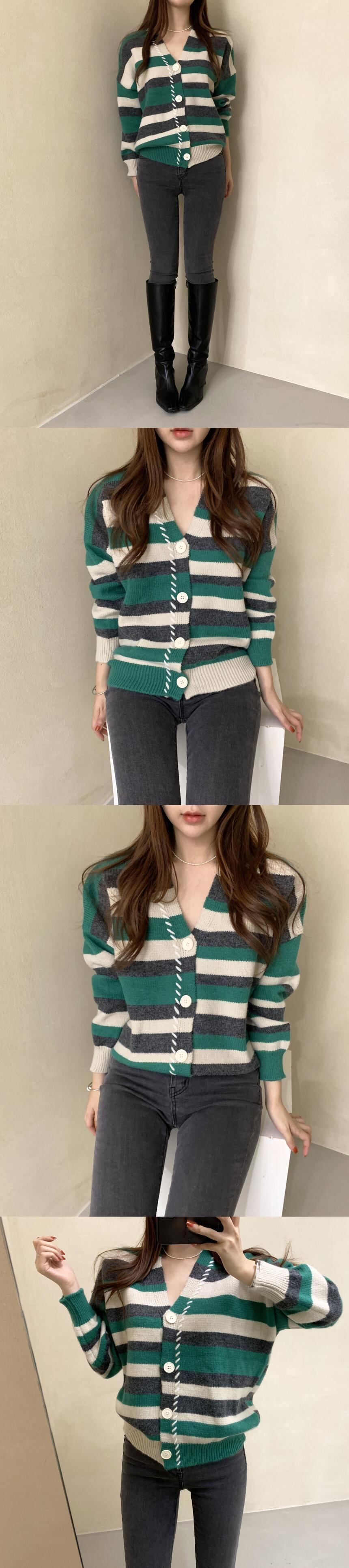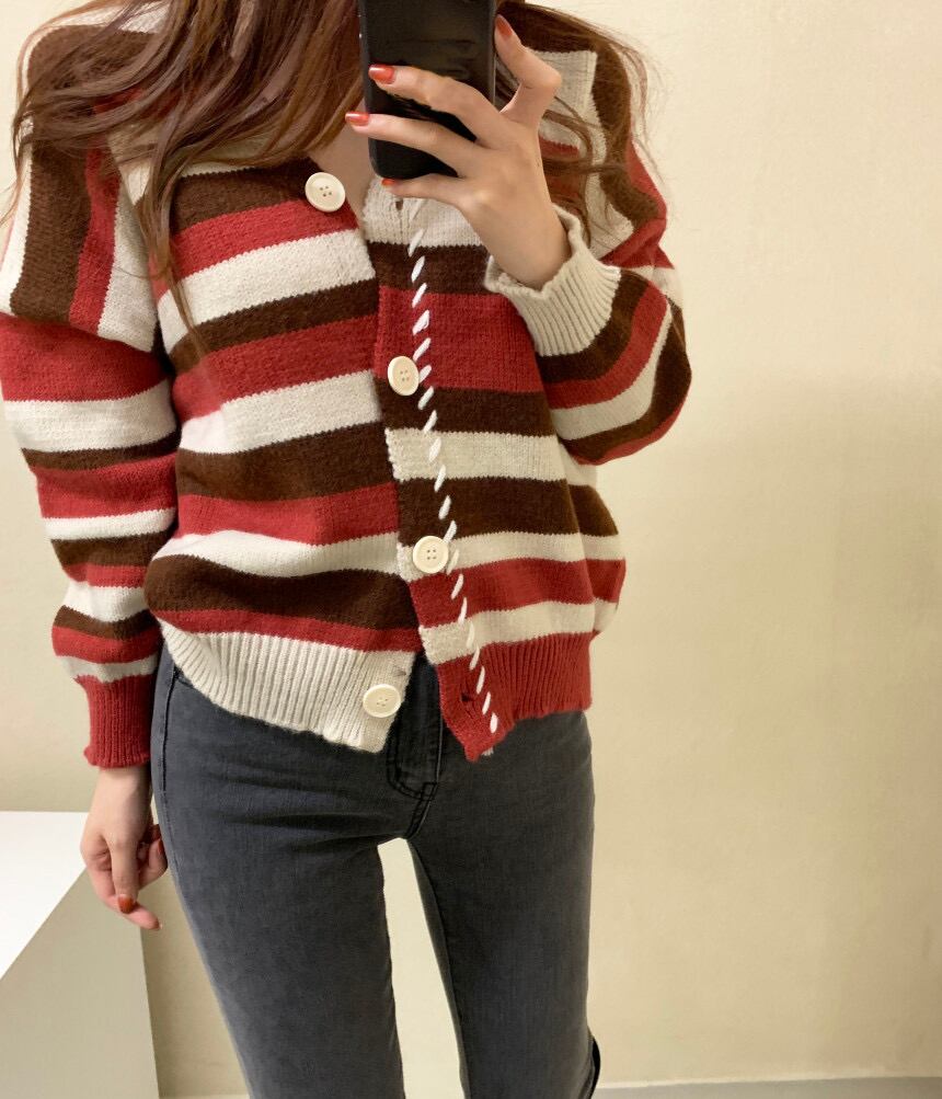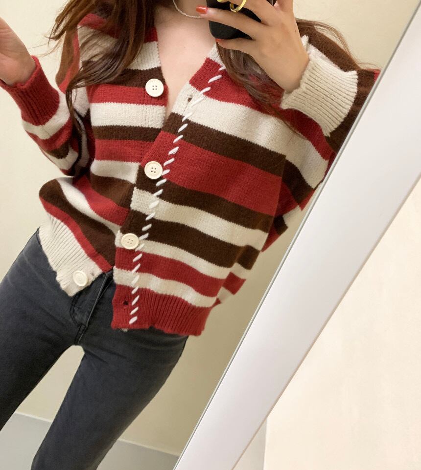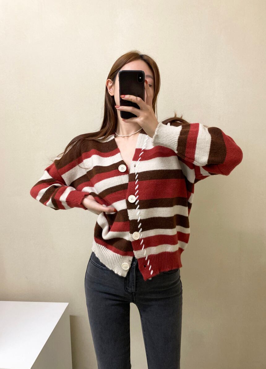 【韓国ファッション】大人可愛い オータムウィンタースタンダードVネックカラーストライプルーズニットカーディガンセーター レディース ロング レトロ 秋物 冬物 ♡ 韓国4130963847 | パリジェンヌ、韓国系ファッション July
