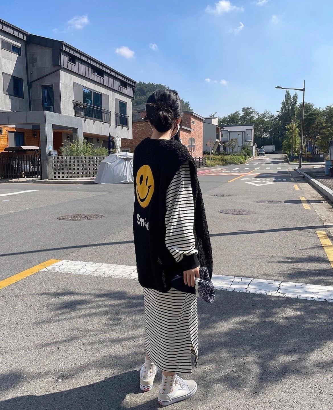 色:カーキベスト,黒のベスト,黒いドレス,グレーのドレス