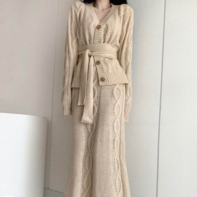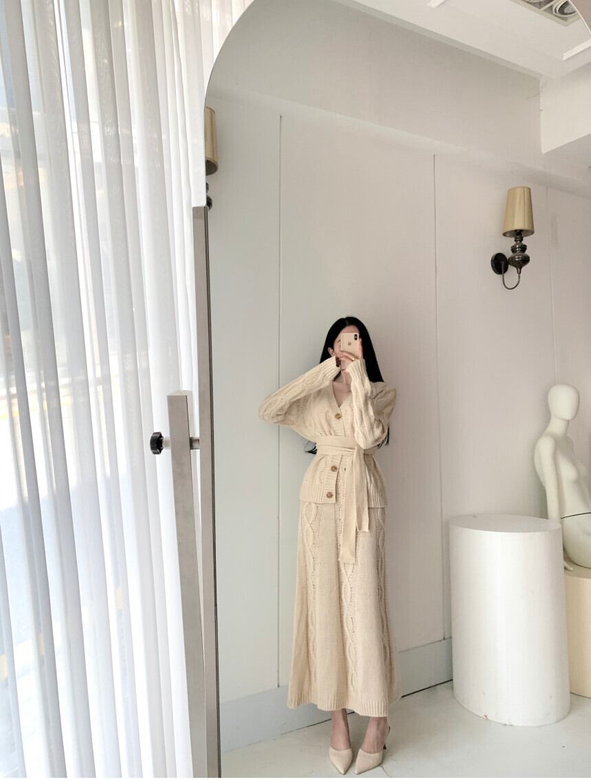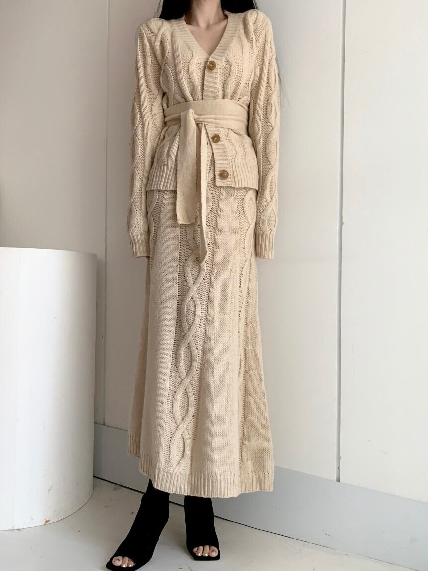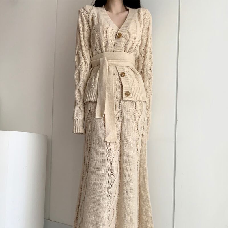 【韓国ファッション】大人可愛い Vネックパターンカーディガンセーター ハイウェストウェストスリムニットスカート レディース エレガント ♡ 韓国3279752342 | パリジェンヌ、韓国系ファッション July