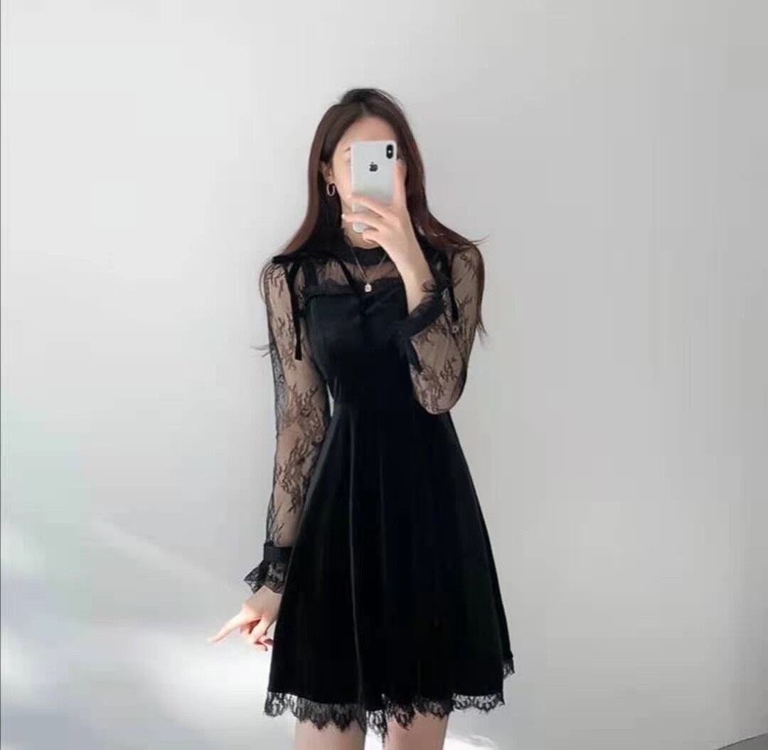 【韓国ファッション】大人可愛い オータムラウンドネックレーススリーブベルベットウェストドレス スカート ベルスリーブ エレガント 秋物 Oネック ステッチ ♡ 韓国22248976698 | パリジェンヌ、韓国系ファッション July