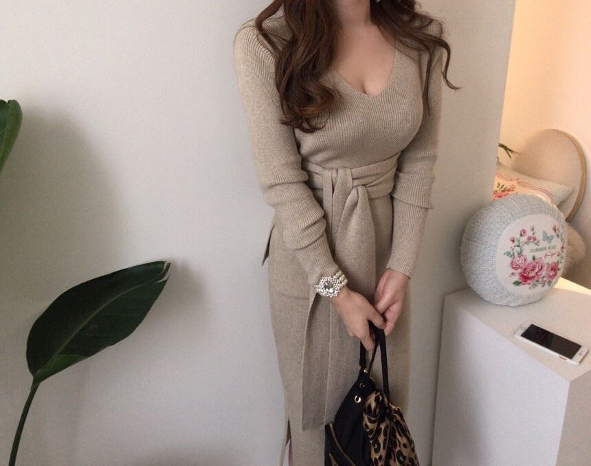 【韓国ファッション】大人可愛い オータムVネックウェストロングセーター ハイウェストスカート レース 秋物 レースアップ ♡ 韓国62502364098 | パリジェンヌ、韓国系ファッション July