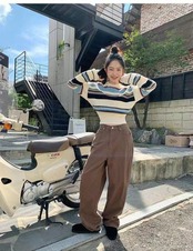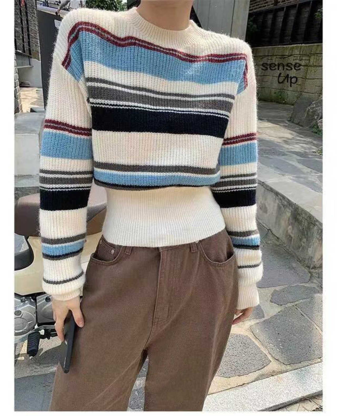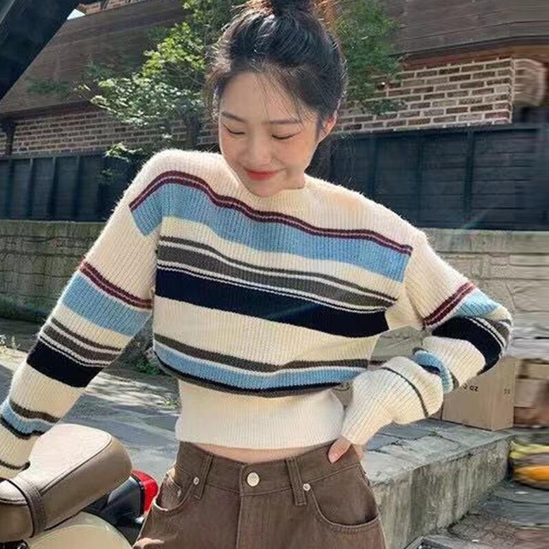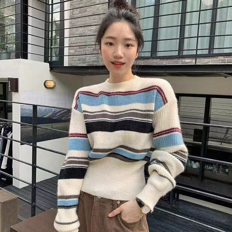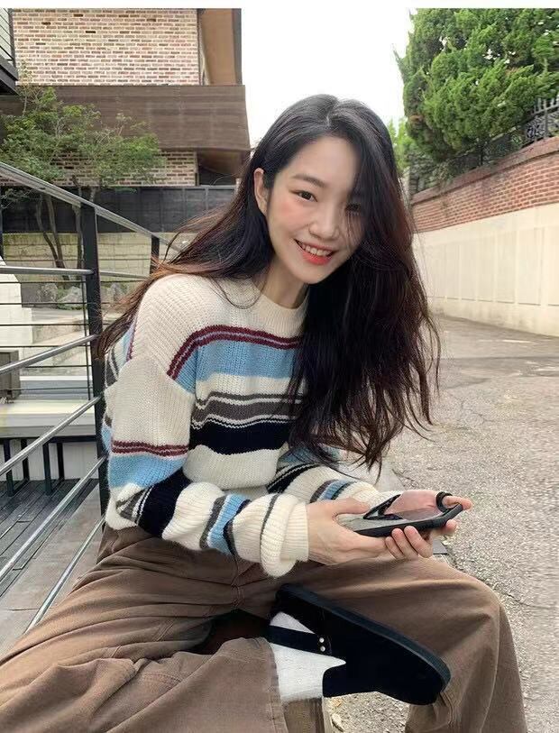 【韓国ファッション】大人可愛い オータムウィンターラウンドネックプルオーバー ルーズストライプニットセーター ロング 秋物 冬物 Oネック ♡ 韓国68651939306 | パリジェンヌ、韓国系ファッション July