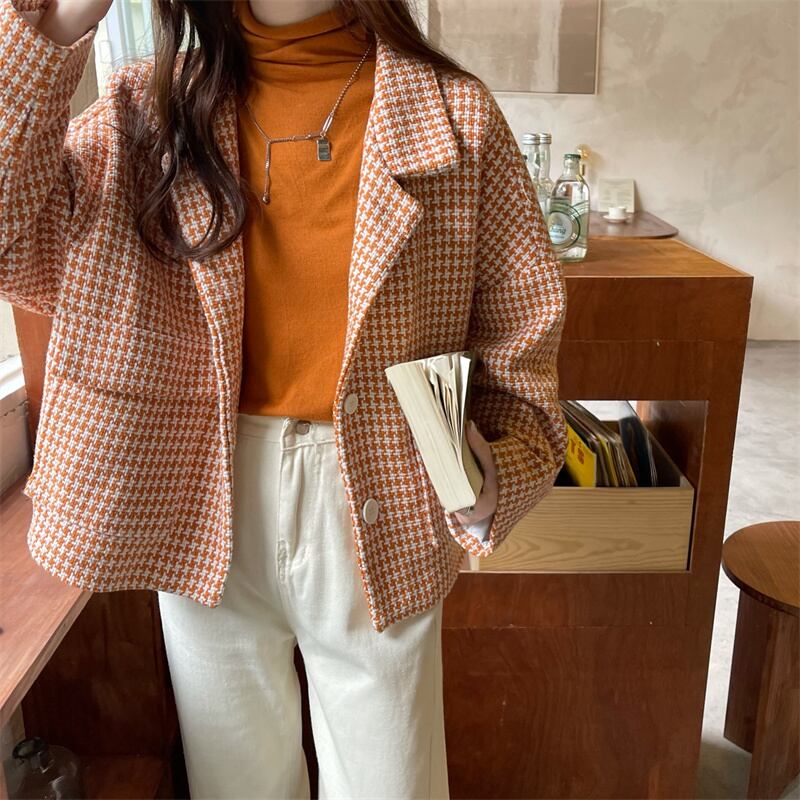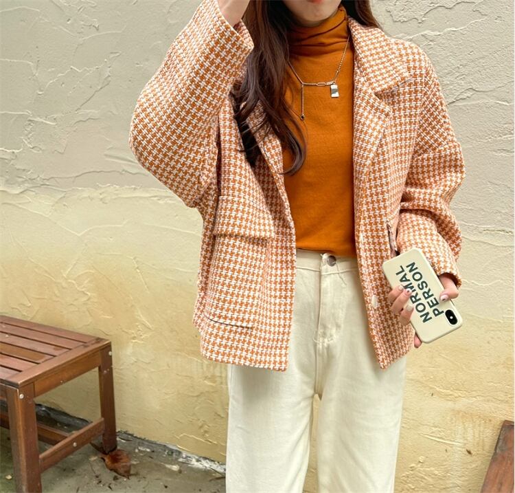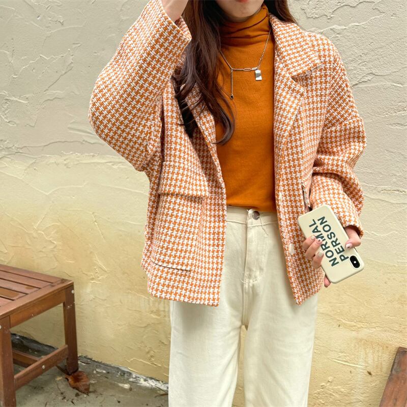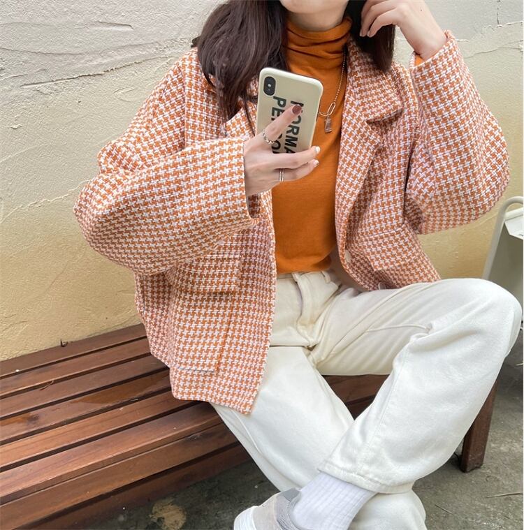 韓国服 スタンダードルーズシャツ 格子柄コート ジャケット レディース レトロ オータム 秋物 ウィンター 冬物 ♡ nanfeng10659621569 | パリジェンヌ、韓国系ファッション July