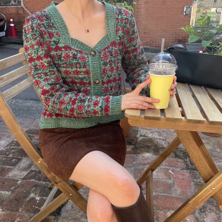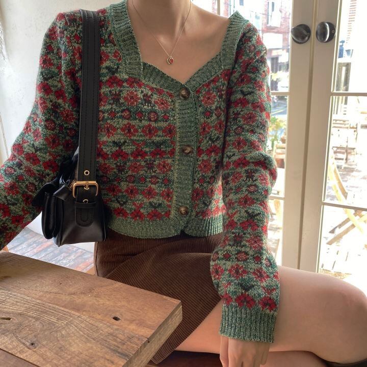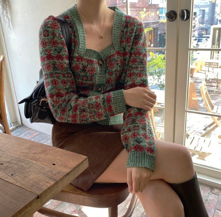 【韓国ファッション】大人可愛い オータムウィンタースタンダードカラールーズショートニットカーディガンセーター レディース ロング レトロ エレガント 秋物 冬物 フラワーデザイン スクウェア ♡ 韓国95079738339 | パリジェンヌ、韓国系ファッション July