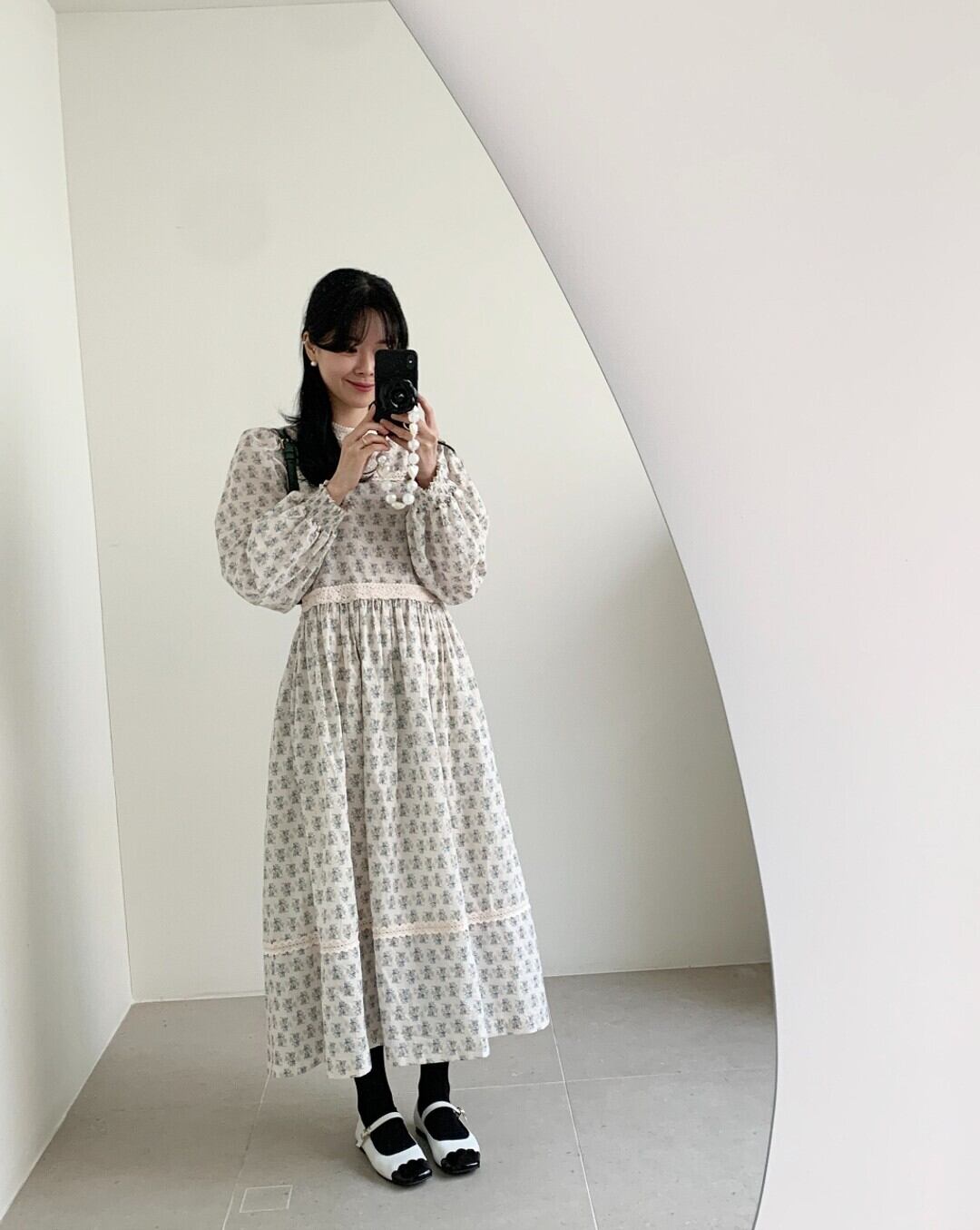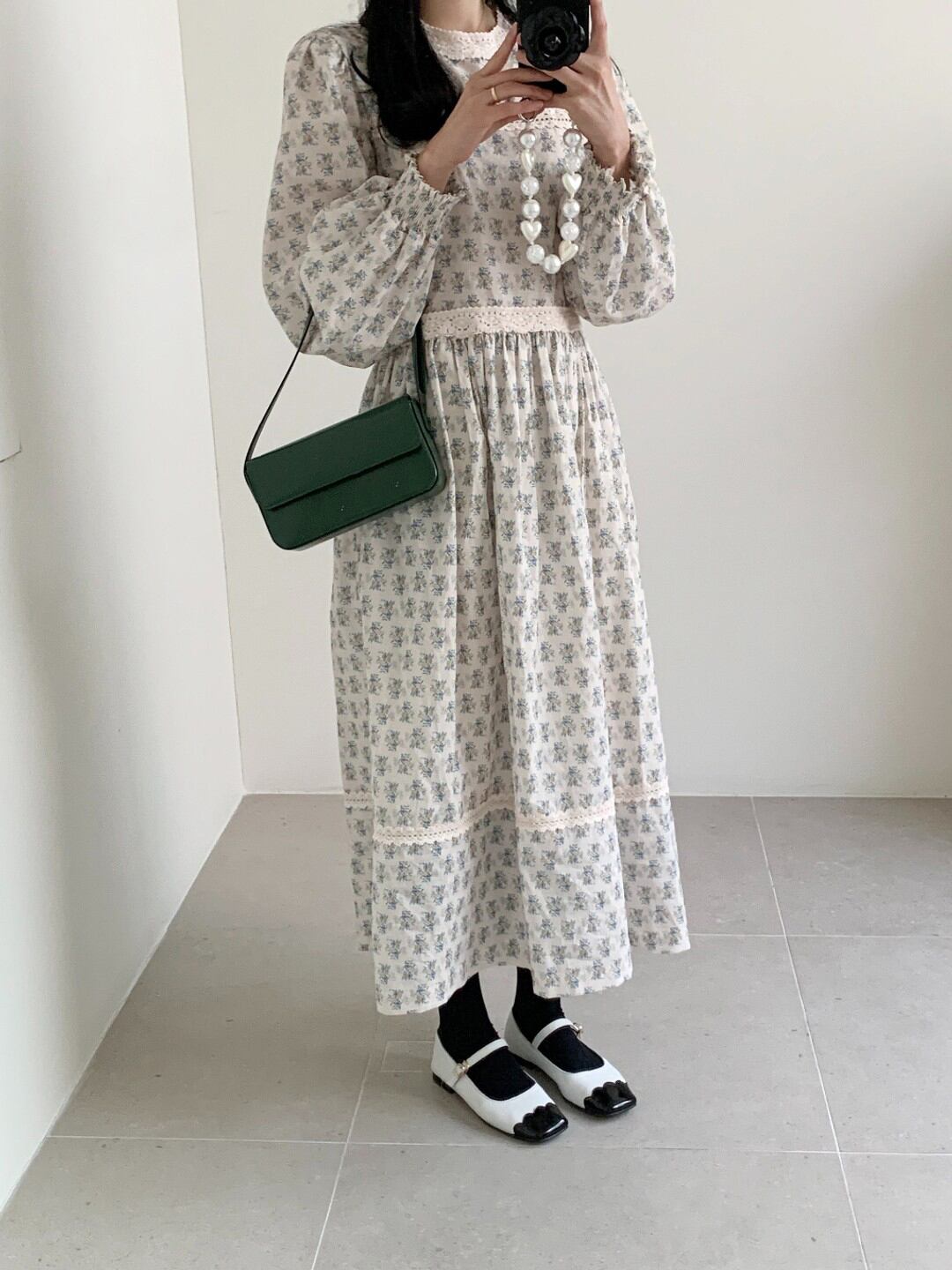 【韓国ファッション】大人可愛い スタンダードラウンドネックレースハイウェストウェストフローラルスリーブドレス レディース レトロ エレガント 花柄 Oネック ステッチ ♡ 韓国97220625561 | パリジェンヌ、韓国系ファッション July