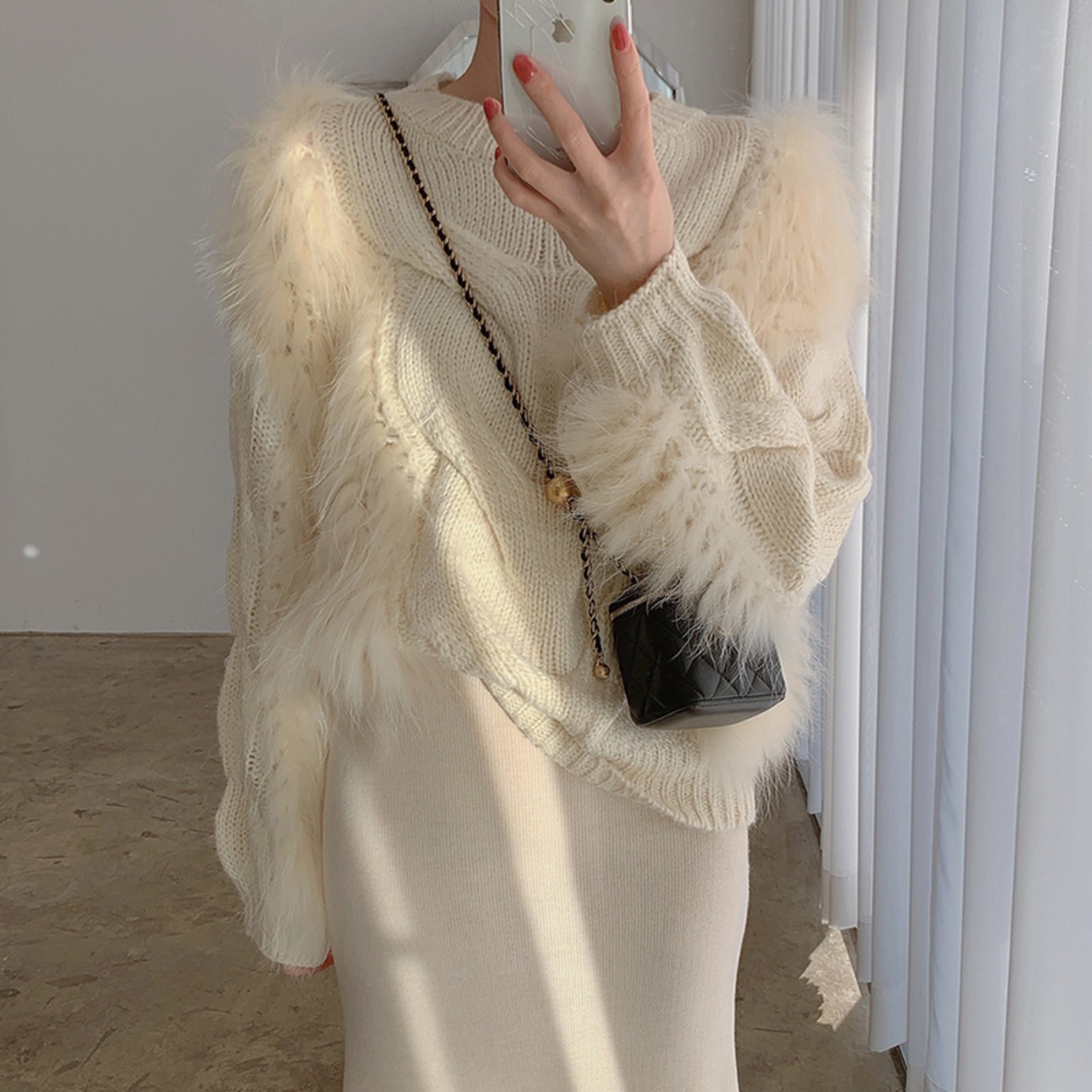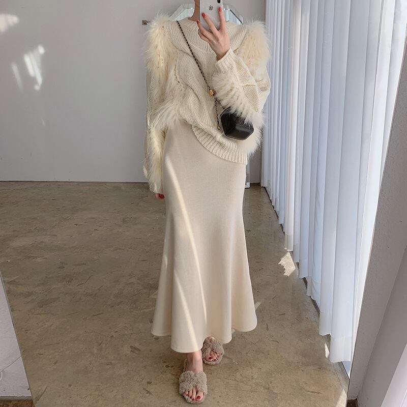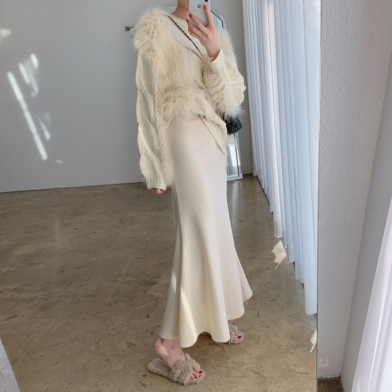 色:アプリコットスカート,カーキ色のスカート,アプリコットセーター,カーキ色のセーター,軽いコーヒーセーター