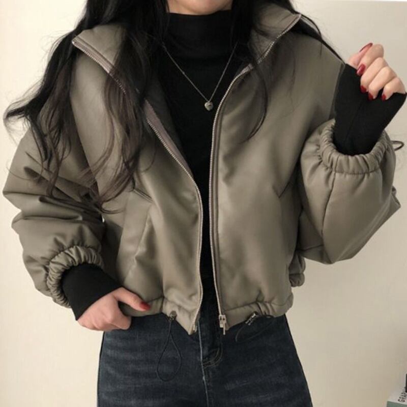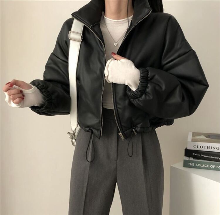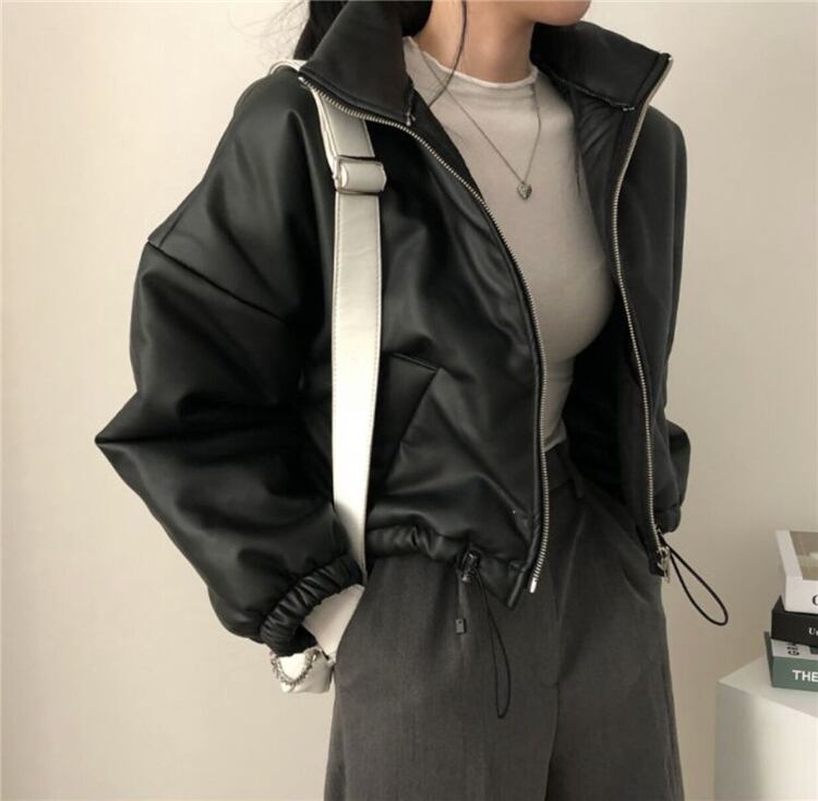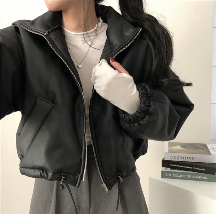 【韓国ファッション】大人可愛い オータムウィンタージッパーギャザールーズショートジャケット レザーレディース 秋物 冬物 ♡ 韓国97672184850 | パリジェンヌ、韓国系ファッション July