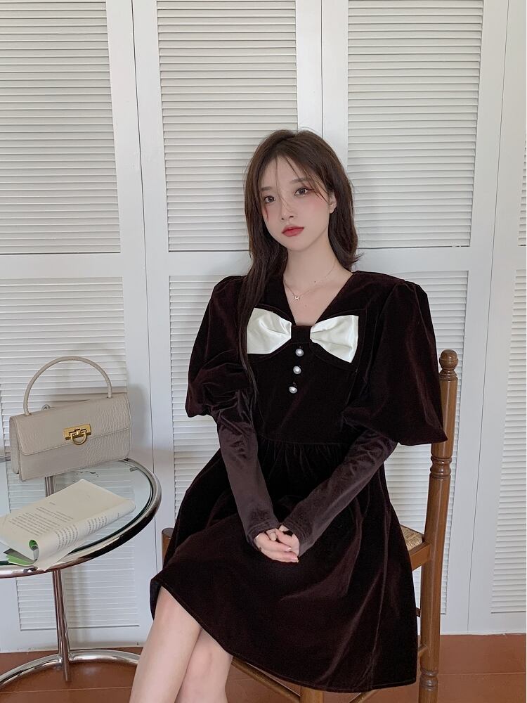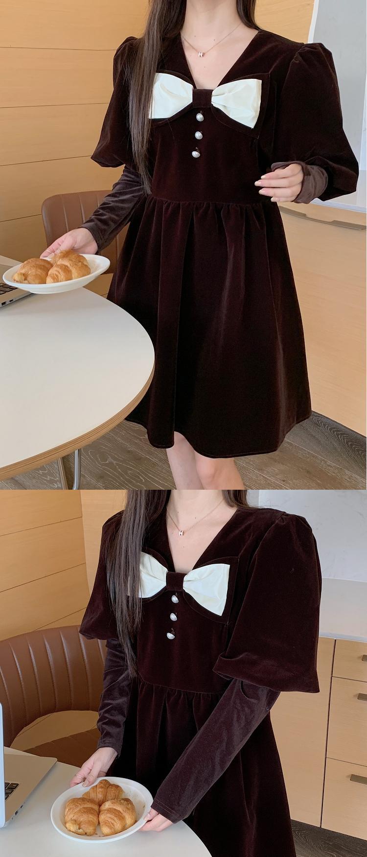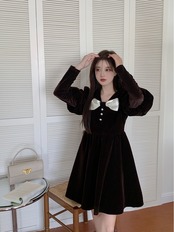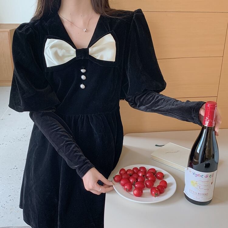 韓国服 スカート ベルベットドレス オータムウィンタースタンダードスタイルウェスト薄手ショート リボン レトロ 秋物 冬物 ♡ nanfeng66908985495 | パリジェンヌ、韓国系ファッション July