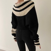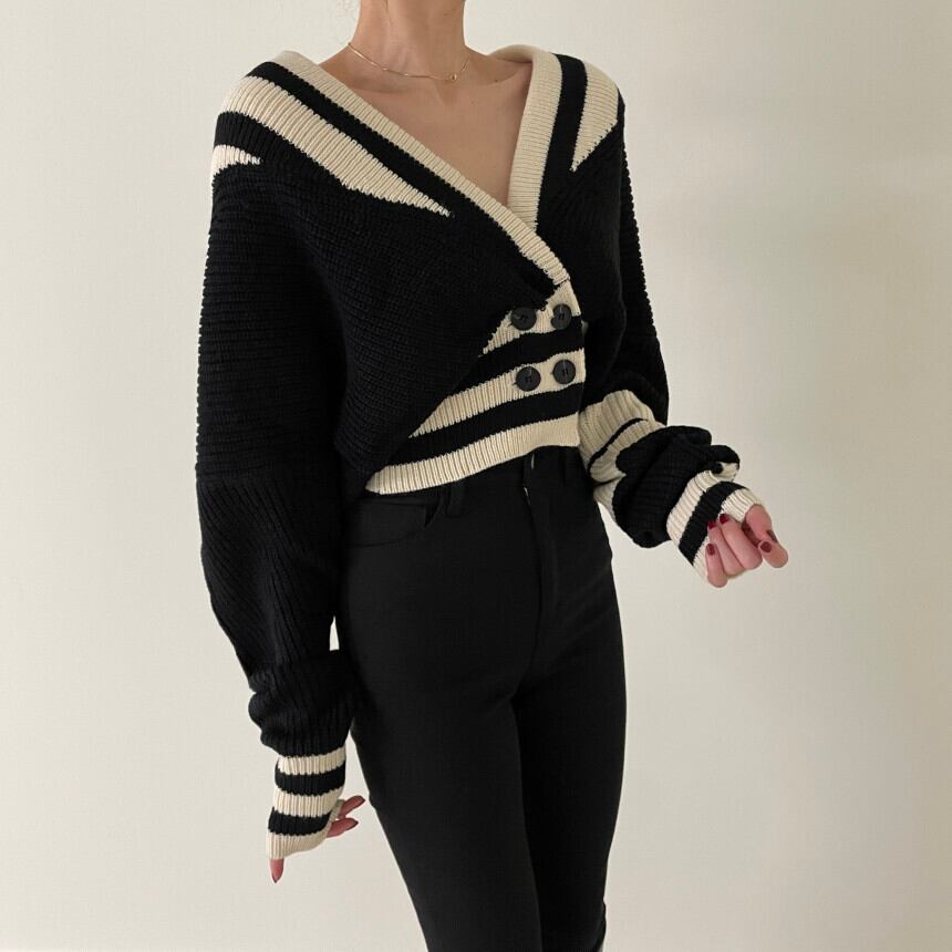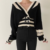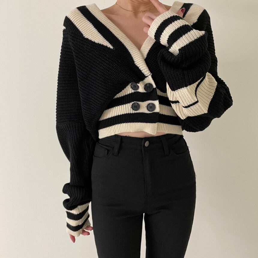 【韓国ファッション】大人可愛い オータムウィンターVネックストライプダブルブレストウェストニットカーディガンセーター ジャケット レディース ロング 秋物 冬物 ♡ 韓国44082458838 | パリジェンヌ、韓国系ファッション July