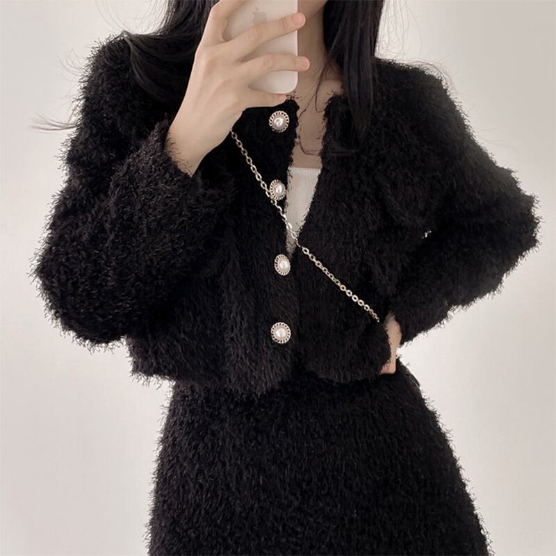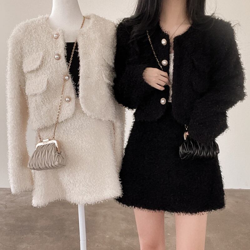 【韓国ファッション】大人可愛い オータムウィンターラウンドネックパールボタンショートコート ハイウェストウェストAラインスカート 秋物 冬物 Oネック 真珠 ♡ 韓国82498801680 | パリジェンヌ、韓国系ファッション July