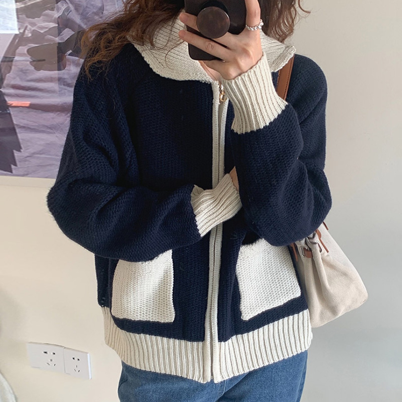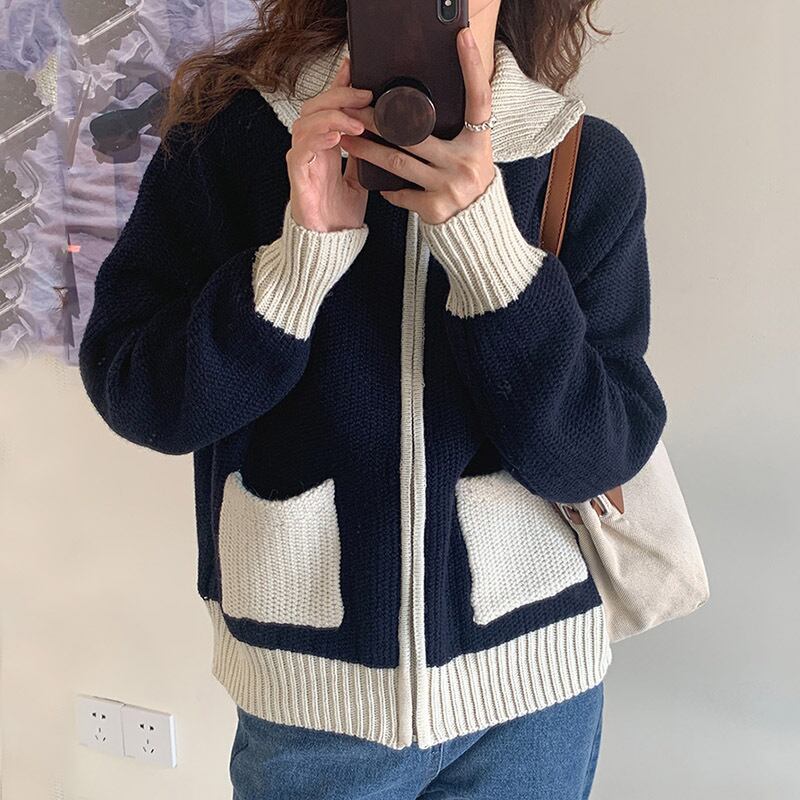 【韓国ファッション】大人可愛い オータムウィンタースタンダードカラージッパールーズダブルポケットカーディガンセーター ジャケット レディース レトロ 秋物 冬物 ♡ 韓国88422696393 | パリジェンヌ、韓国系ファッション July