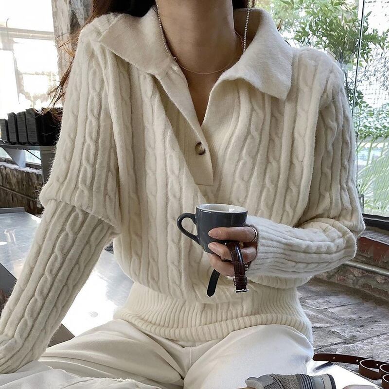 【韓国ファッション】大人可愛い オータムウィンタースタンダードカラーパターンルーズカジュアルニットセーター レディース ロング レトロ 秋物 冬物 ♡ 韓国50689944931 | パリジェンヌ、韓国系ファッション July