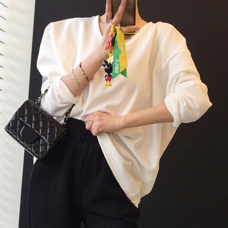 【韓国ファッション】大人可愛い オータムVネックプルオーバー ルーズカジュアルソリッド カラーTシャツ シャツ トップス ロング 秋物 ソリッドカラー ♡ 韓国65350915704 | パリジェンヌ、韓国系ファッション July