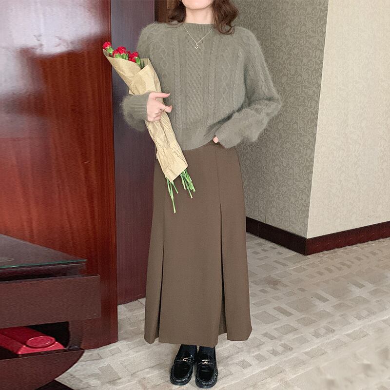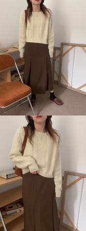 色:コーヒー色のスカート,アプリコットセーター,グレーのセーター