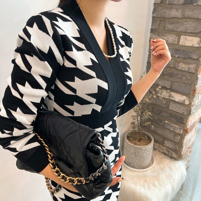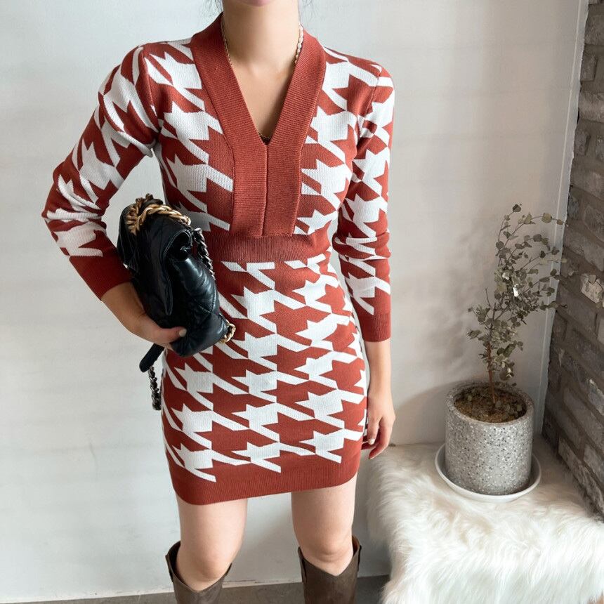 【韓国ファッション】大人可愛い オータムウィンタースタンダード薄手Vネックカラーハイウェストウェストスリムニットドレス ロング レトロ 秋物 冬物 ♡ 韓国28405283323 | パリジェンヌ、韓国系ファッション July