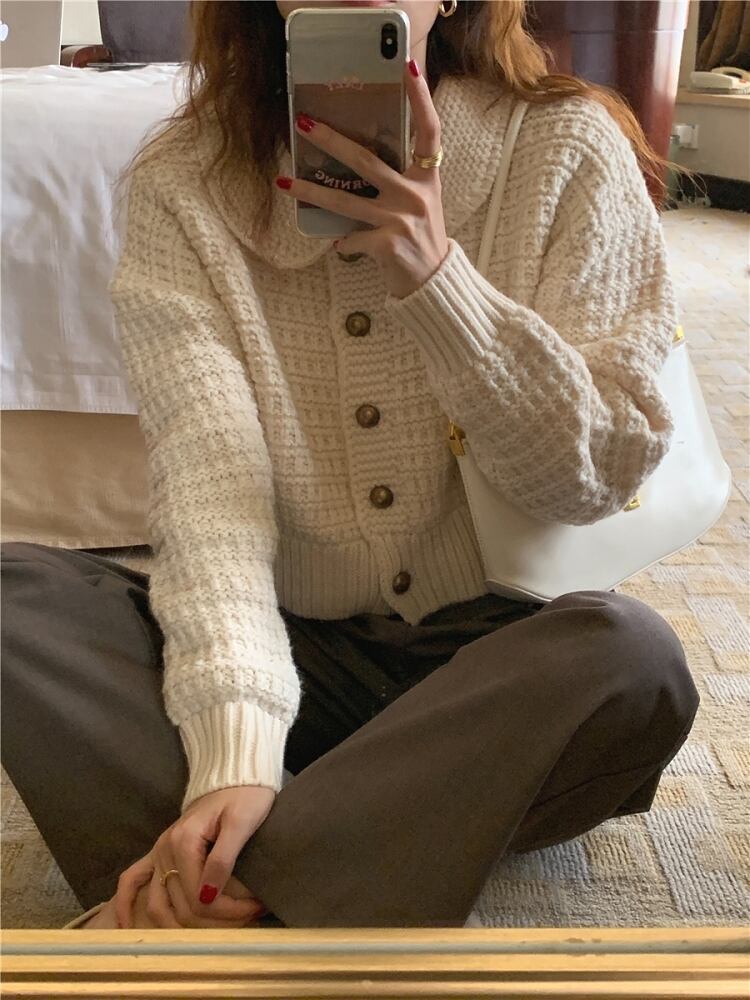 韓国服 カラーショートニットカーディガンレディースオータムウィンタースタンダードセーター コート ルーズブラウス スプリング レトロ 春物 秋物 冬物 ♡ nanfeng10884470597 | パリジェンヌ、韓国系ファッション July