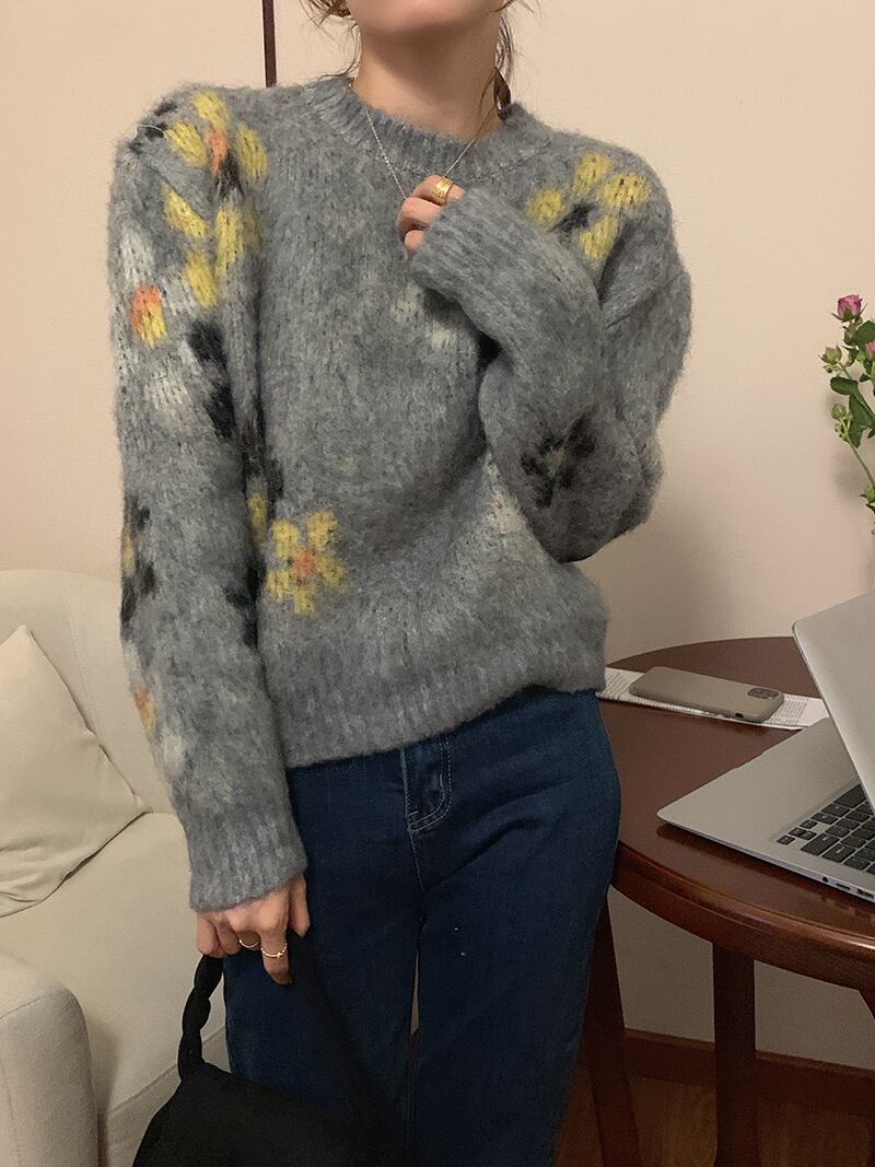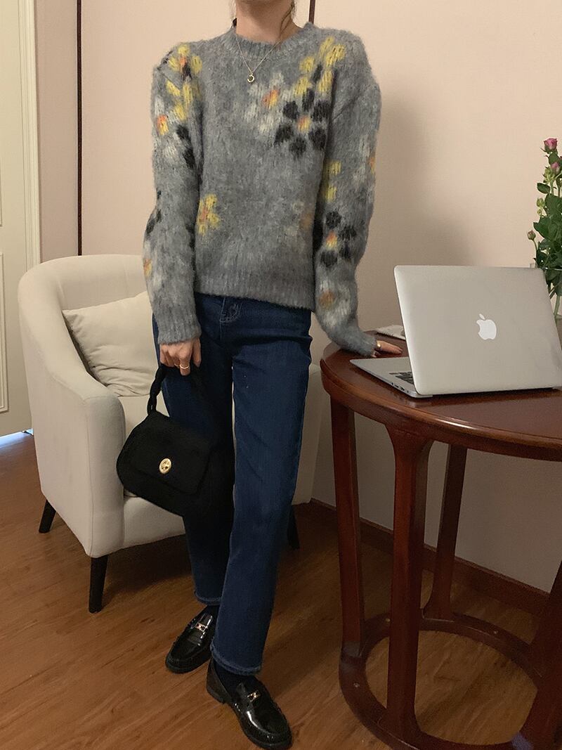 【韓国ファッション】大人可愛い オータムウィンタースタンダードFlowerデザイン パターンラウンドネックプルオーバー ルーズニットセーター レディース レトロ 秋物 冬物 Oネック フラワーデザイン ♡ 韓国51547122678 | パリジェンヌ、韓国系ファッション July
