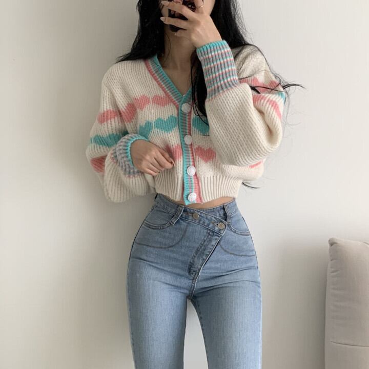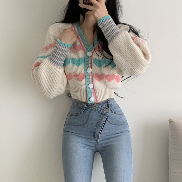 【韓国ファッション】大人可愛い オータムウィンターVネックルーズショートジャカードニットカーディガンセーター レディース 大人ガーリー スウィート キュート カジュアル 秋物 冬物 ♡ 韓国98735058218 | パリジェンヌ、韓国系ファッション July
