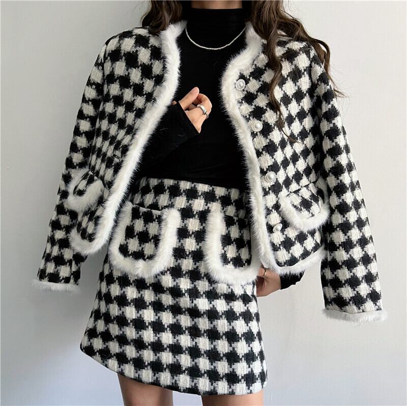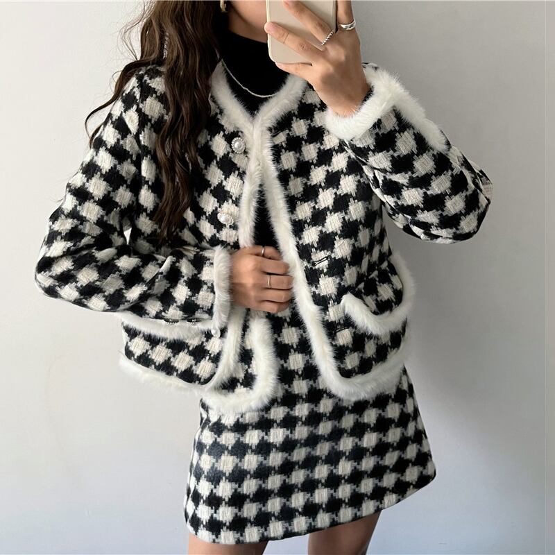 【韓国ファッション】大人可愛い スタンダードラウンドネックジャケット ハイウェストウェストショートスカート レトロ Oネック ステッチ ♡ 韓国10388554238 | パリジェンヌ、韓国系ファッション July
