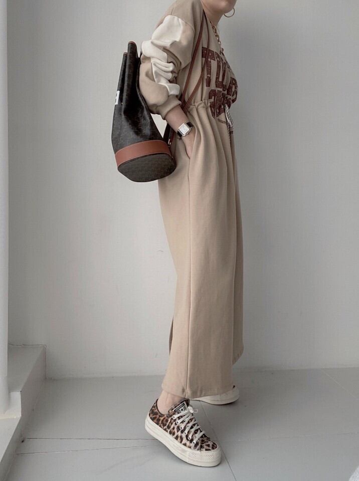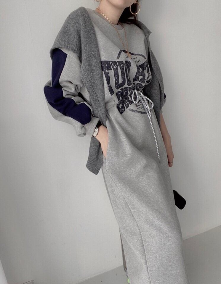 【韓国ファッション】大人可愛い オータムラウンドネックプリントカラーギャザーウェストセーター ドレス レディース 秋物 Oネック ♡ 韓国13283982967 | パリジェンヌ、韓国系ファッション July
