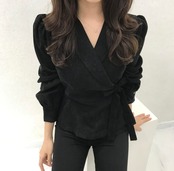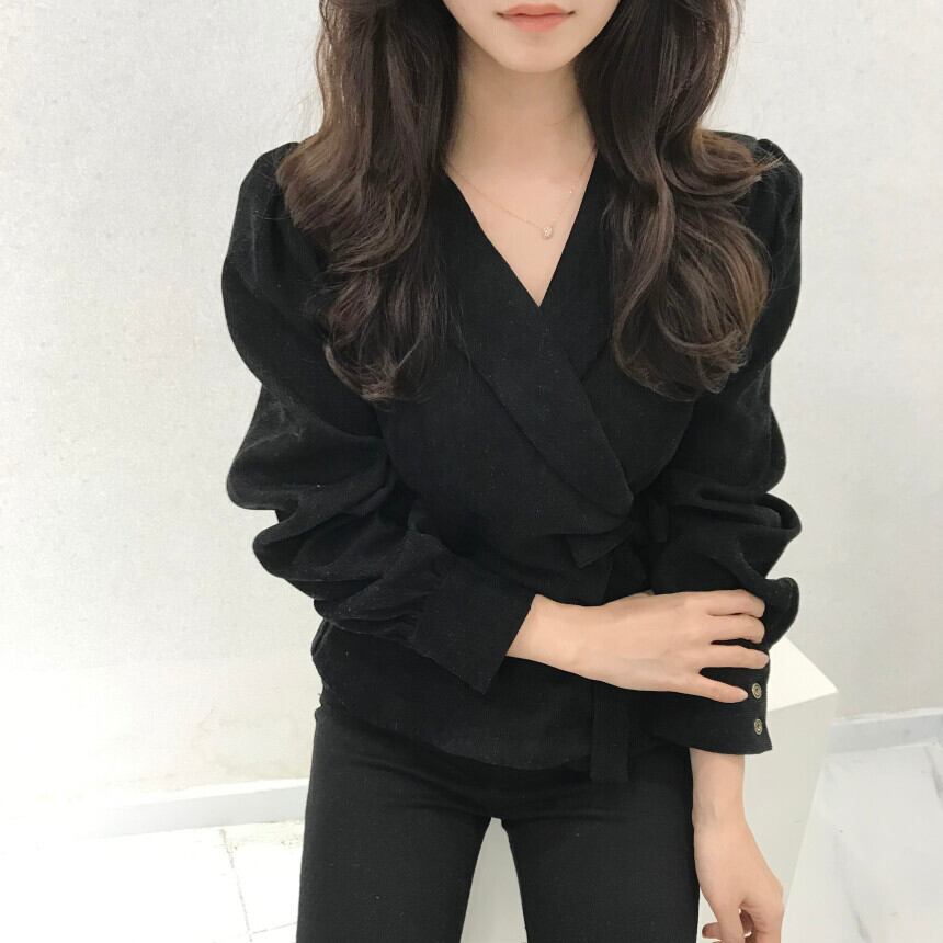 【韓国ファッション】大人可愛い オータムウィンタースタンダードカラーサイドウェスト薄手ソリッド スリーブTシャツ シャツ トップス レトロ 秋物 冬物 ソリッドカラー ♡ 韓国11816445442 | パリジェンヌ、韓国系ファッション July