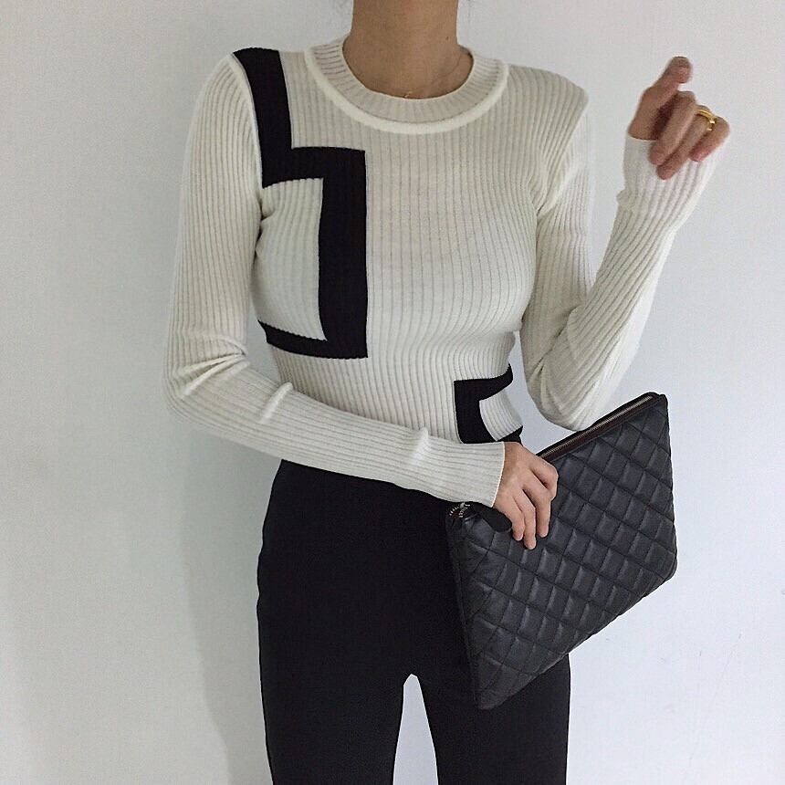 【韓国ファッション】大人可愛い オータムウィンターラウンドネックカラースリムセーター トップス レディース 秋物 冬物 Oネック ステッチ ♡ 韓国92928536983 | パリジェンヌ、韓国系ファッション July