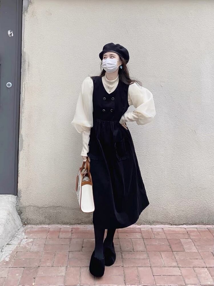 韓国服 オータムウィンターダブルブレストウェストスタンダードスカート スリーブニットトップス コットン レトロ 秋物 冬物 ピュア ♡ nanfeng86313626209 | パリジェンヌ、韓国系ファッション July