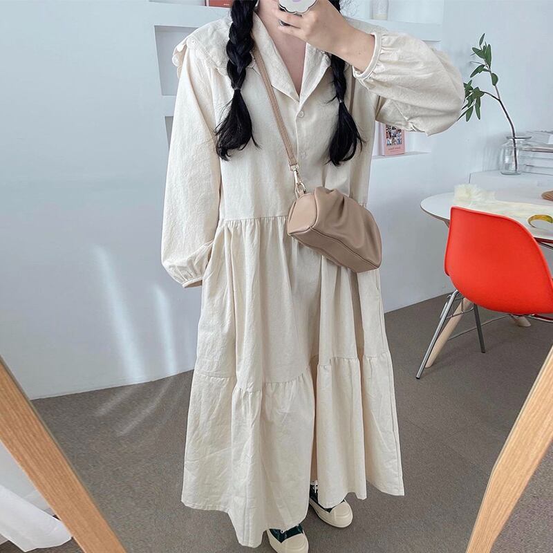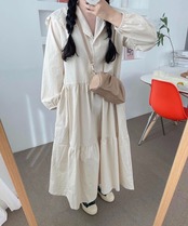 【韓国ファッション】大人可愛い オータムスタンダードレースプリーツハイウェストウェストルーズロングスリーブドレス レトロ 秋物 ♡ 韓国31445687732 | パリジェンヌ、韓国系ファッション July