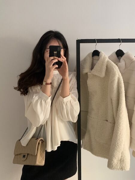 【韓国ファッション】大人可愛い ラウンドネックプリーツルーズスリーブシャツ スリムショートスカート ランタンスリーブ Oネック ♡ 韓国66031347425 | パリジェンヌ、韓国系ファッション July