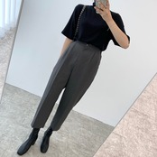 色:白のシャツ,ブラックトップ,グレーパンツ,黒いズボン