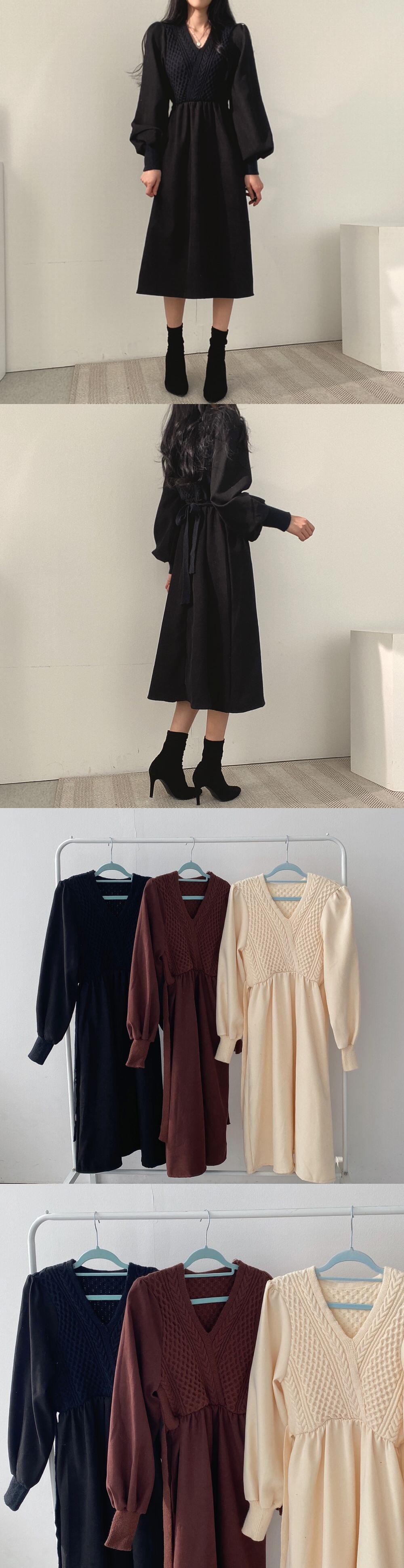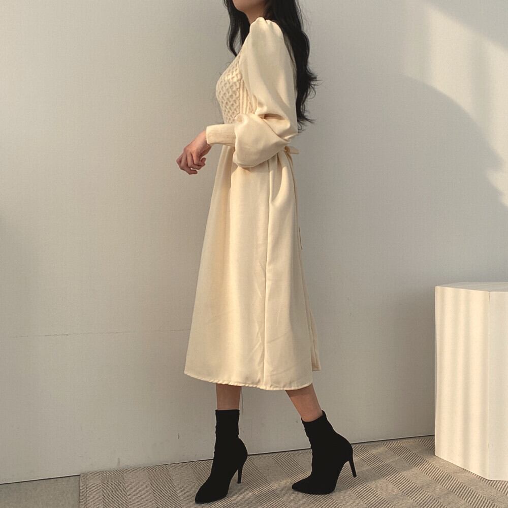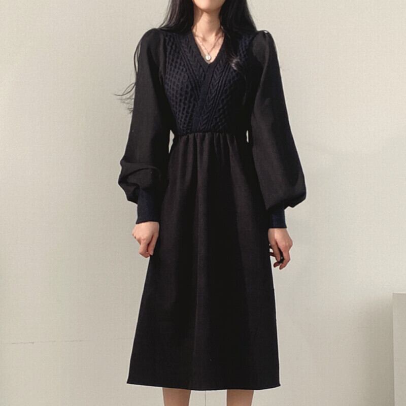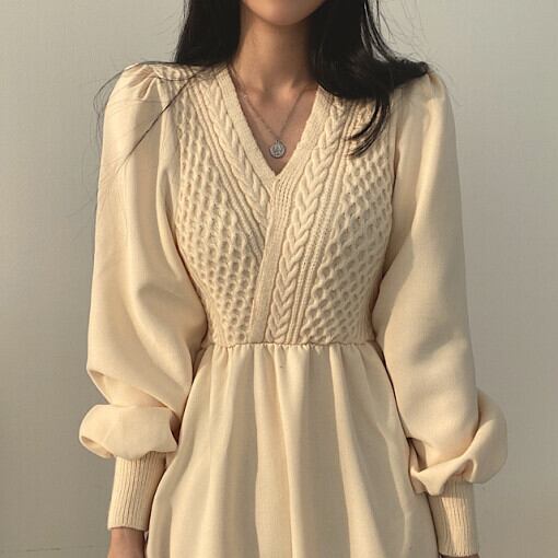 【韓国ファッション】大人可愛い オータムウィンター薄手Vネックパターンニットレースウェストスリーブドレス レディース 秋物 冬物 ステッチ ♡ 韓国25641022525 | パリジェンヌ、韓国系ファッション July