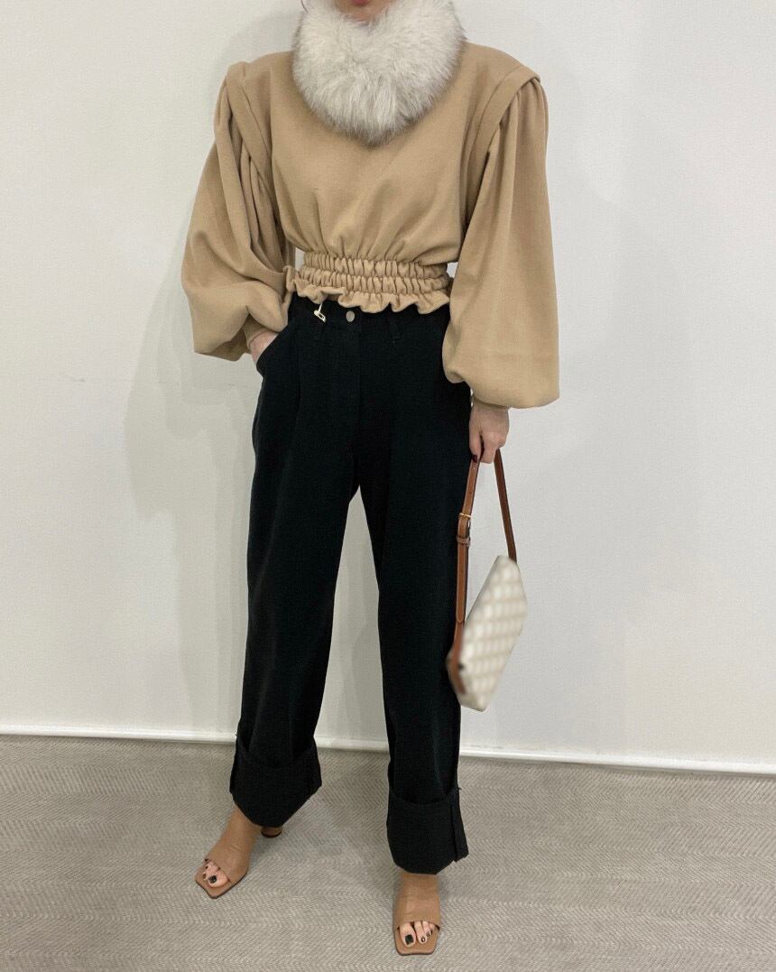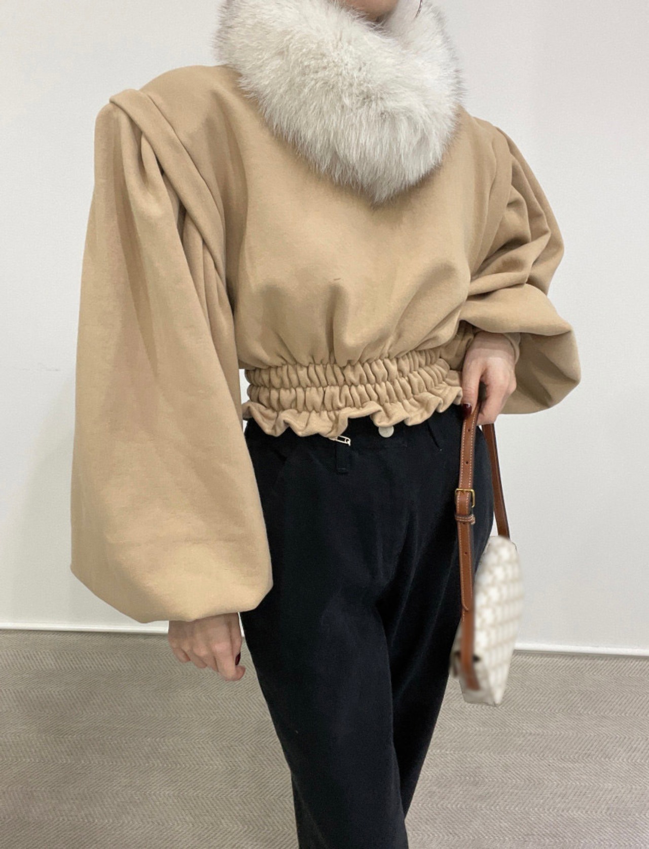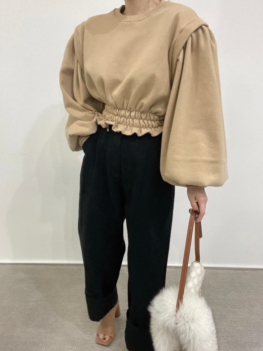 【韓国ファッション】大人可愛い オータムウィンターラウンドネックプリーツウェストルーズショートソリッド カラースリーブカジュアルトップス ランタンスリーブ 秋物 冬物 Oネック ソリッドカラー ♡ 韓国12907089878 | パリジェンヌ、韓国系ファッション July