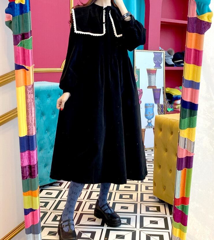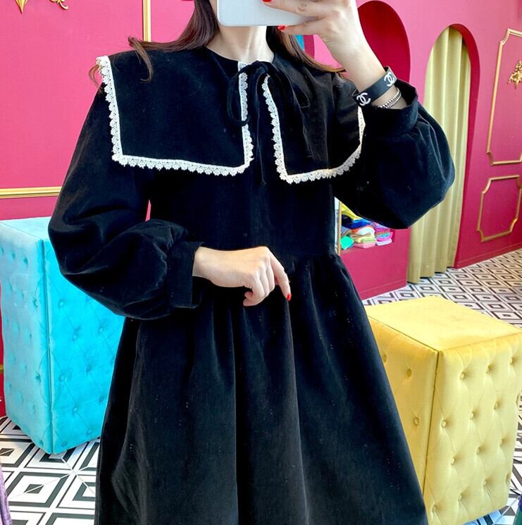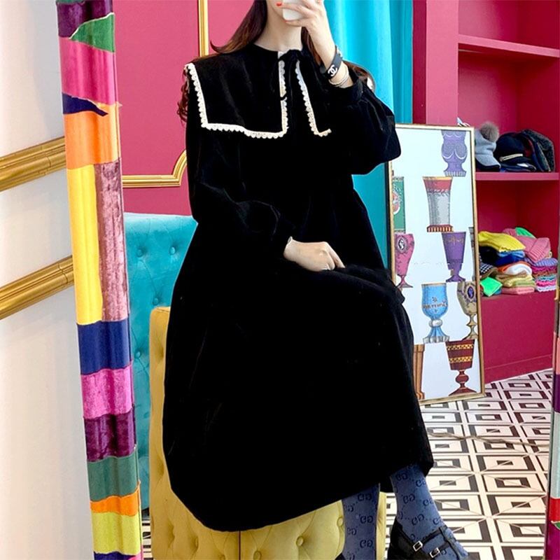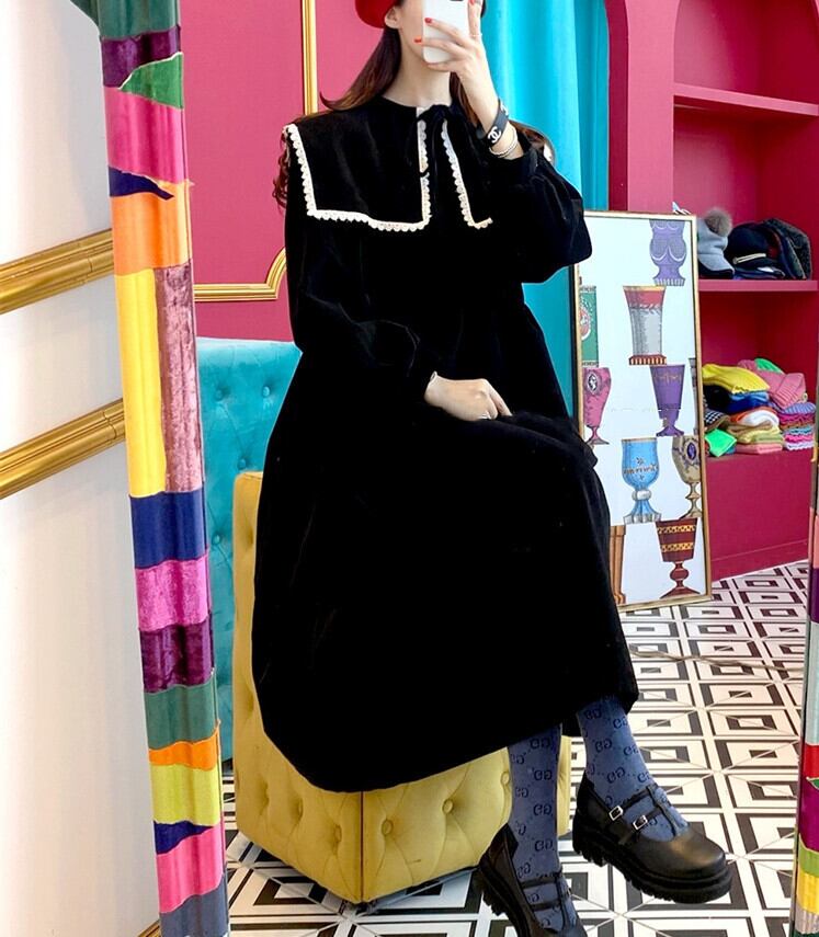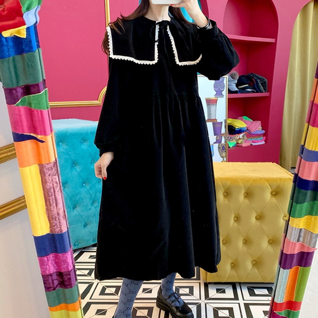 【韓国ファッション】大人可愛い オータムウィンタースタイルネイビーカラーレースルーズスリーブロングドレス レディース 秋物 冬物 ♡ 韓国58946207228 | パリジェンヌ、韓国系ファッション July