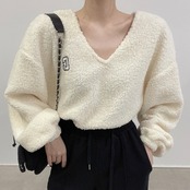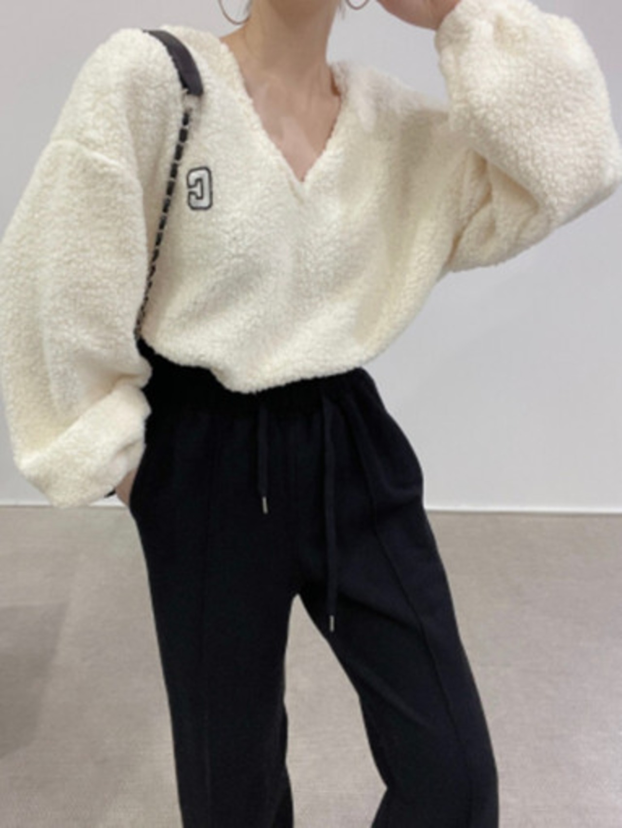 【韓国ファッション】大人可愛い オータムウィンターVネック刺繍ルーズプルオーバー カジュアルジャケット レディース 秋物 冬物 ♡ 韓国67259491152 | パリジェンヌ、韓国系ファッション July
