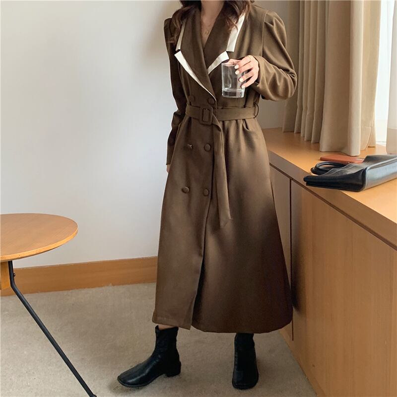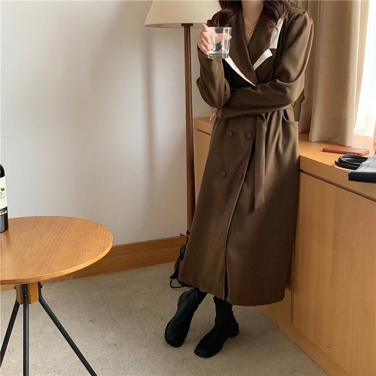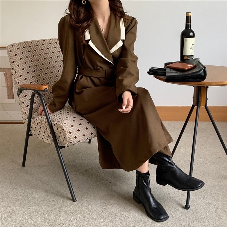 韓国服 スタンダードカラーダブルブレストドレス オータムウィンターウェスト薄手ロングスカート レトロ レース 秋物 冬物 レースアップ ♡ nanfeng25682756638 | パリジェンヌ、韓国系ファッション July