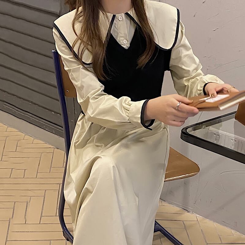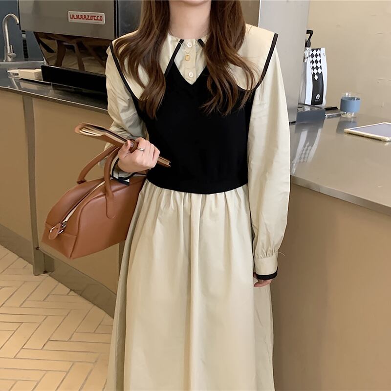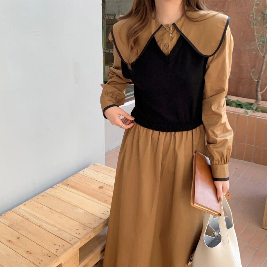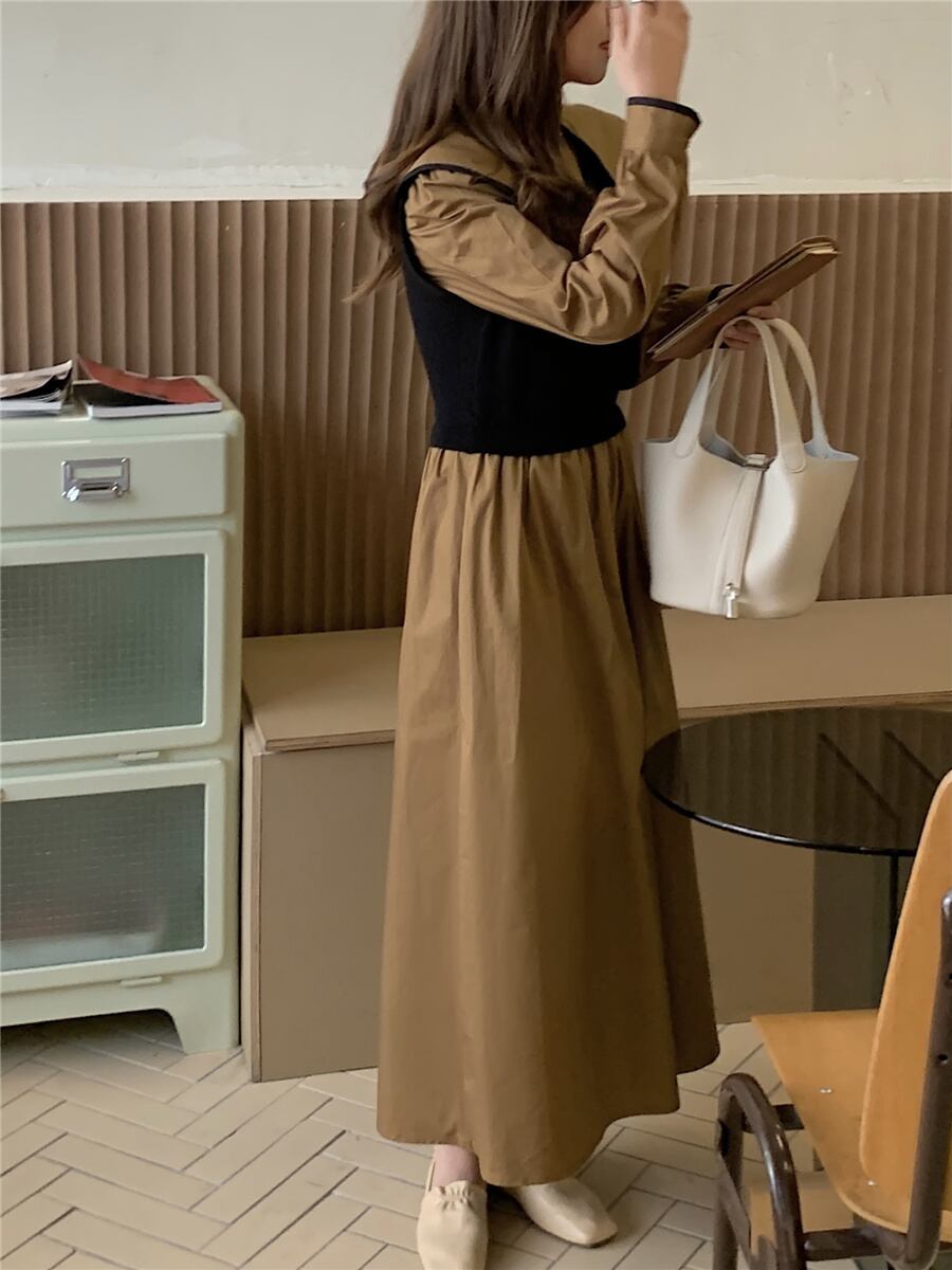 【韓国ファッション】大人可愛い ニットプリーツハイウェストウェストシングルブレストドレス ロングスカート レディース ステッチ ♡ 韓国18081645971 | パリジェンヌ、韓国系ファッション July