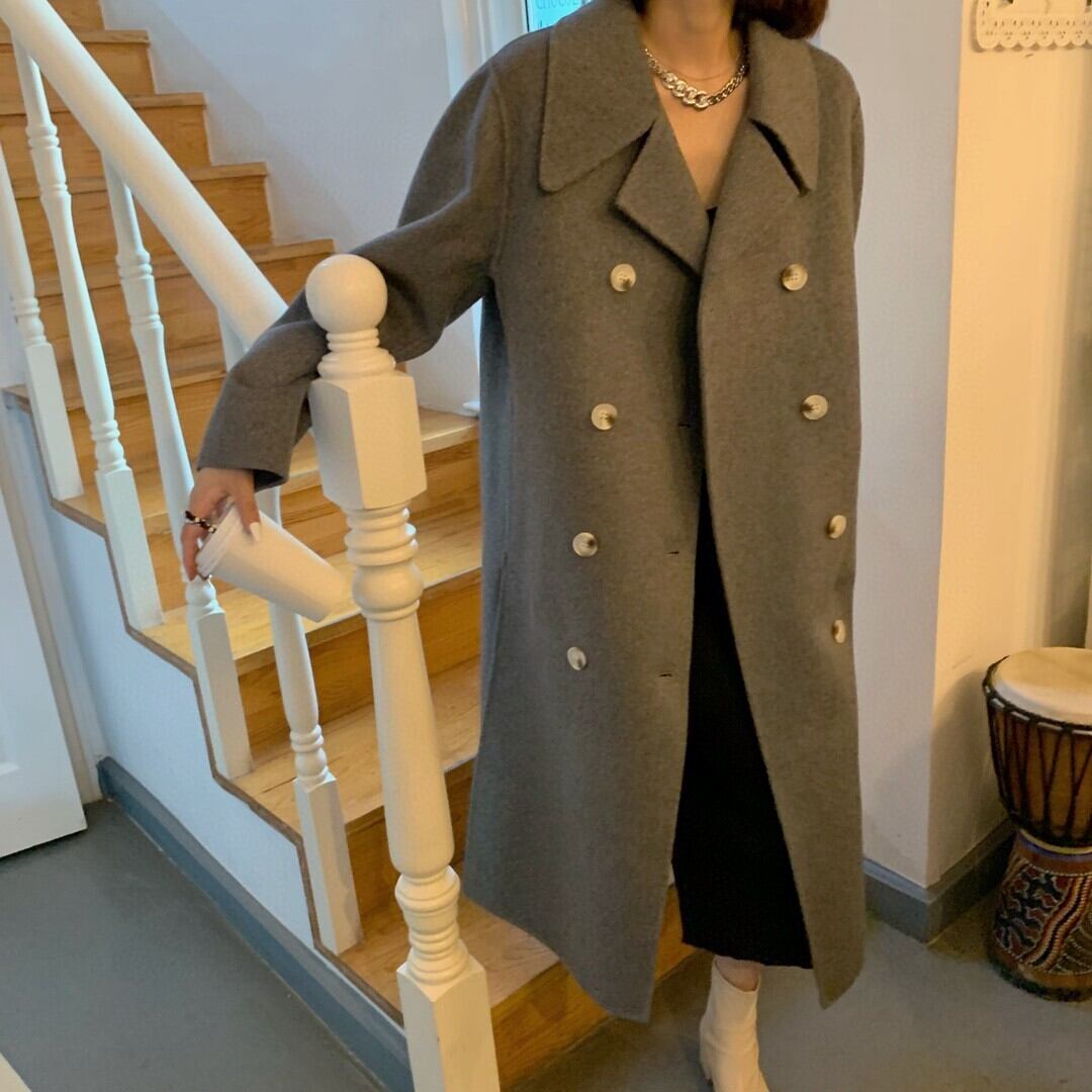 【韓国ファッション】大人可愛い オータムウィンタースタンダードカラーダブルブレストルーズロングコート ジャケット レディース レトロ 秋物 冬物 ♡ 韓国11236045876 | パリジェンヌ、韓国系ファッション July