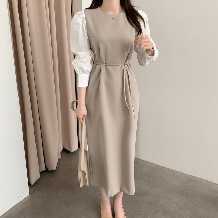 【韓国ファッション】大人可愛い オータムウィンターラウンドネックプリーツウェストロングドレス レース 秋物 冬物 Oネック レースアップ ステッチ ♡ 韓国70952692722 | パリジェンヌ、韓国系ファッション July