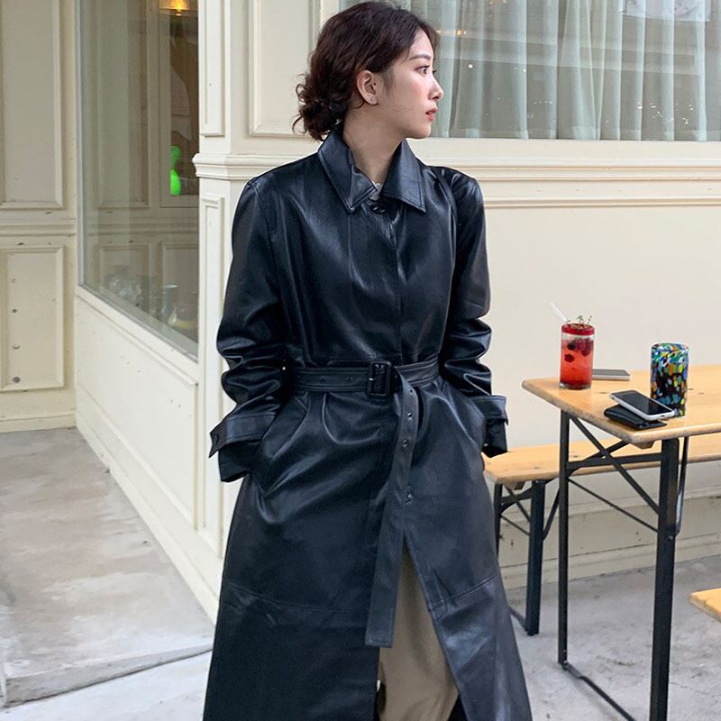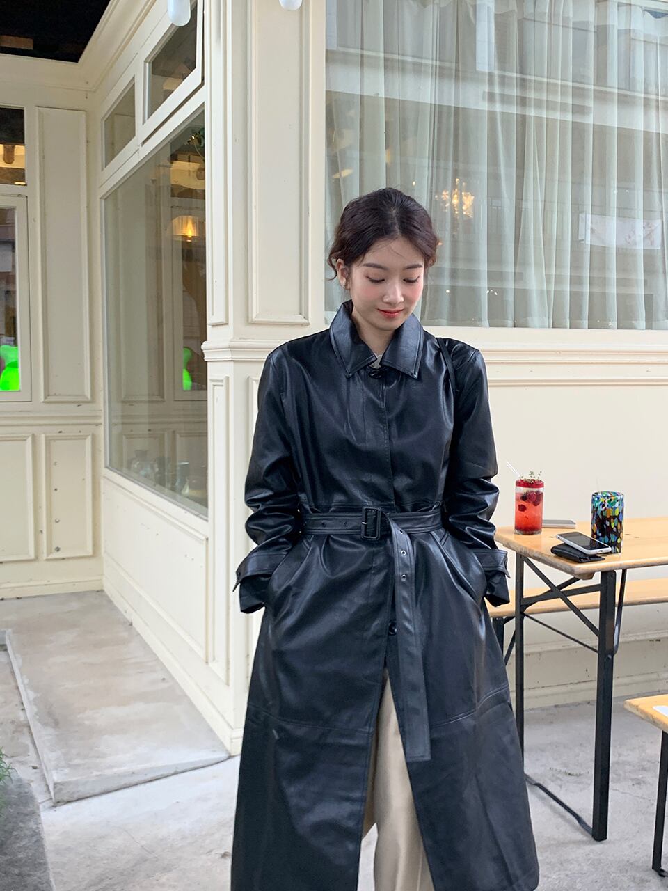 【韓国ファッション】大人可愛い オータムウィンタースタンダードストラップ ウェストロングレザージャケット レトロ 秋物 冬物 ♡ 韓国77011711859 | パリジェンヌ、韓国系ファッション July