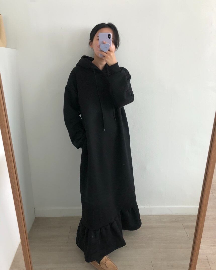【韓国ファッション】大人可愛い オータムウィンタースタンダードスタイルフードギャザールーズロングベルベットセーター ドレス レディース レトロ 秋物 冬物 ♡ 韓国12406029323 | パリジェンヌ、韓国系ファッション July