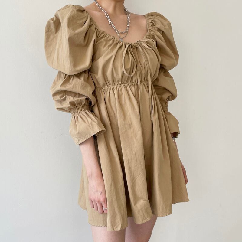 【韓国ファッション】大人可愛い オータムスタンダードダークカラープリーツギャザーハイウェストウェストショートスリーブドレス レディース レトロ 秋物 スクウェア ♡ 韓国74123859386 | パリジェンヌ、韓国系ファッション July
